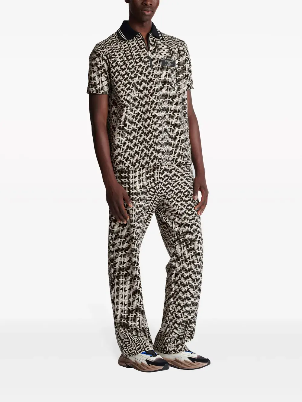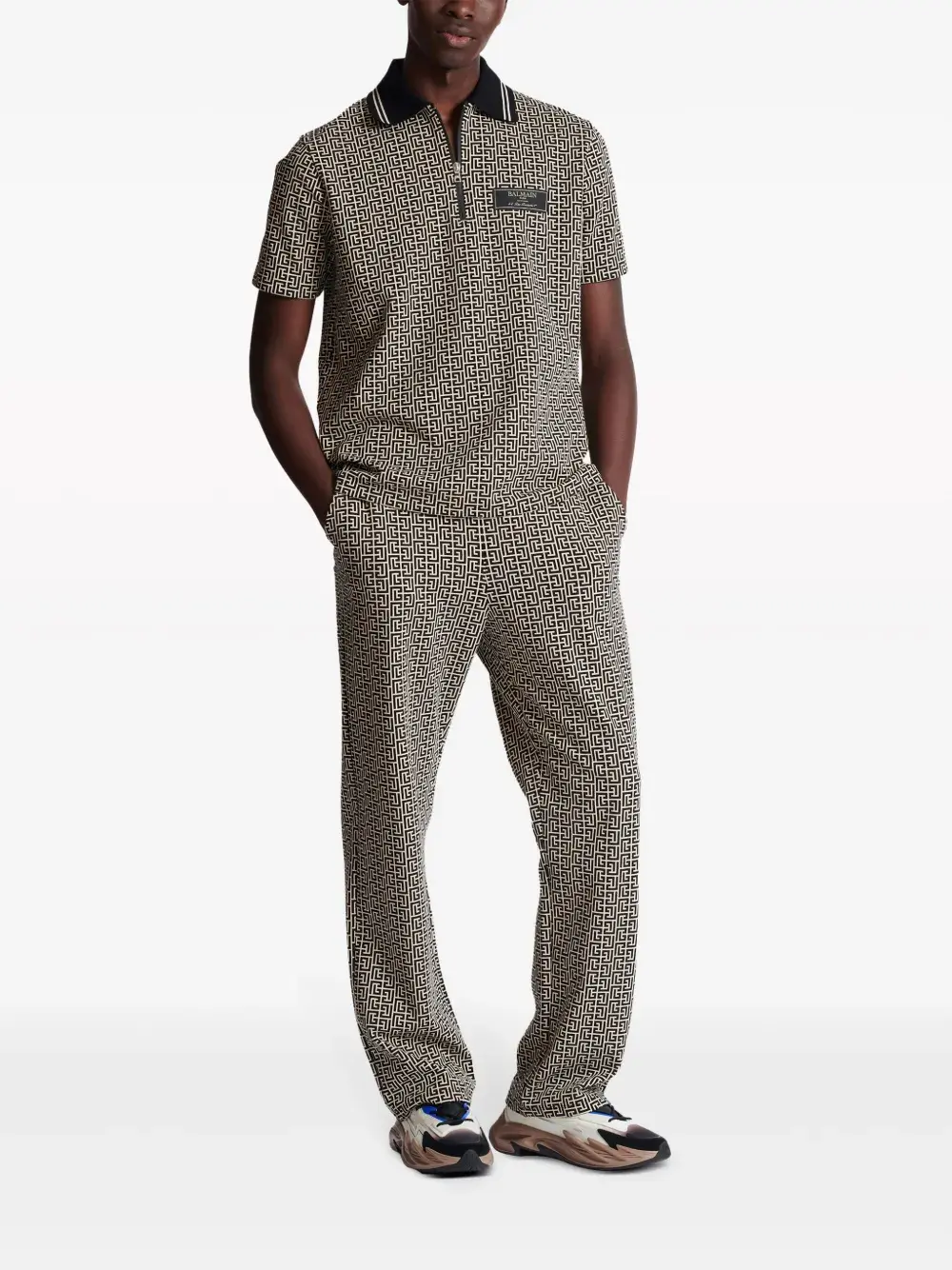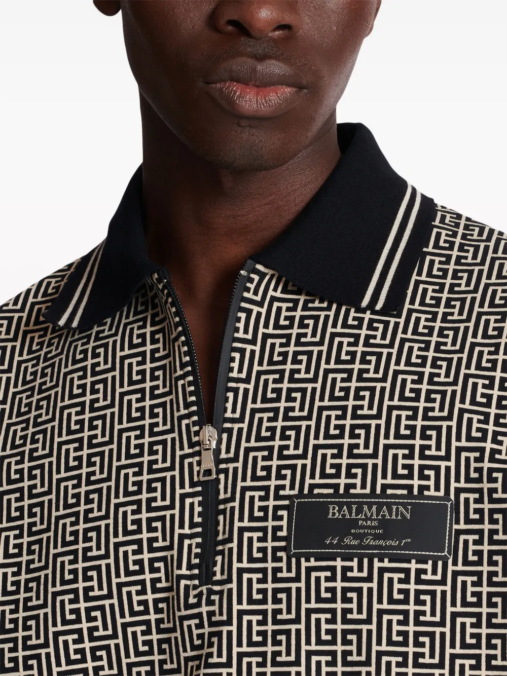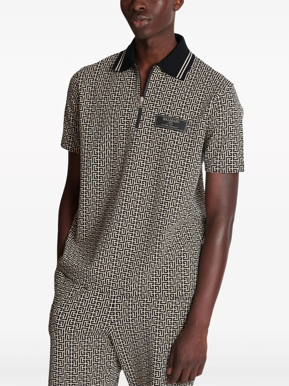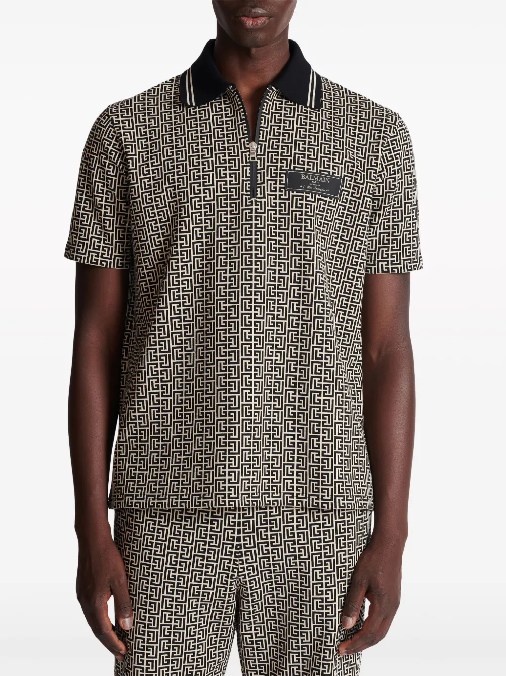 Рубашка поло с монограммой BALMAIN, черный