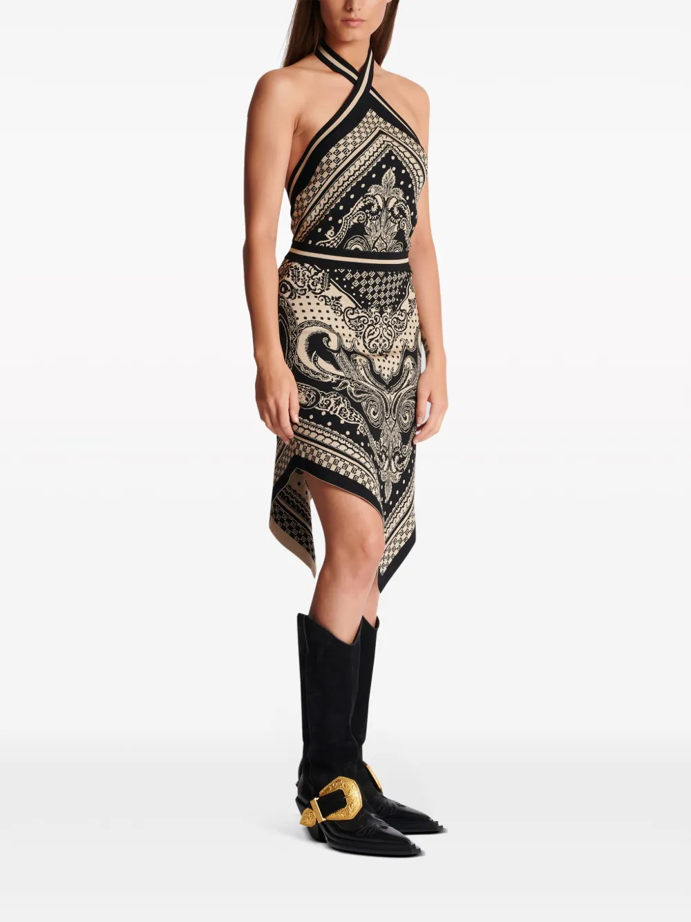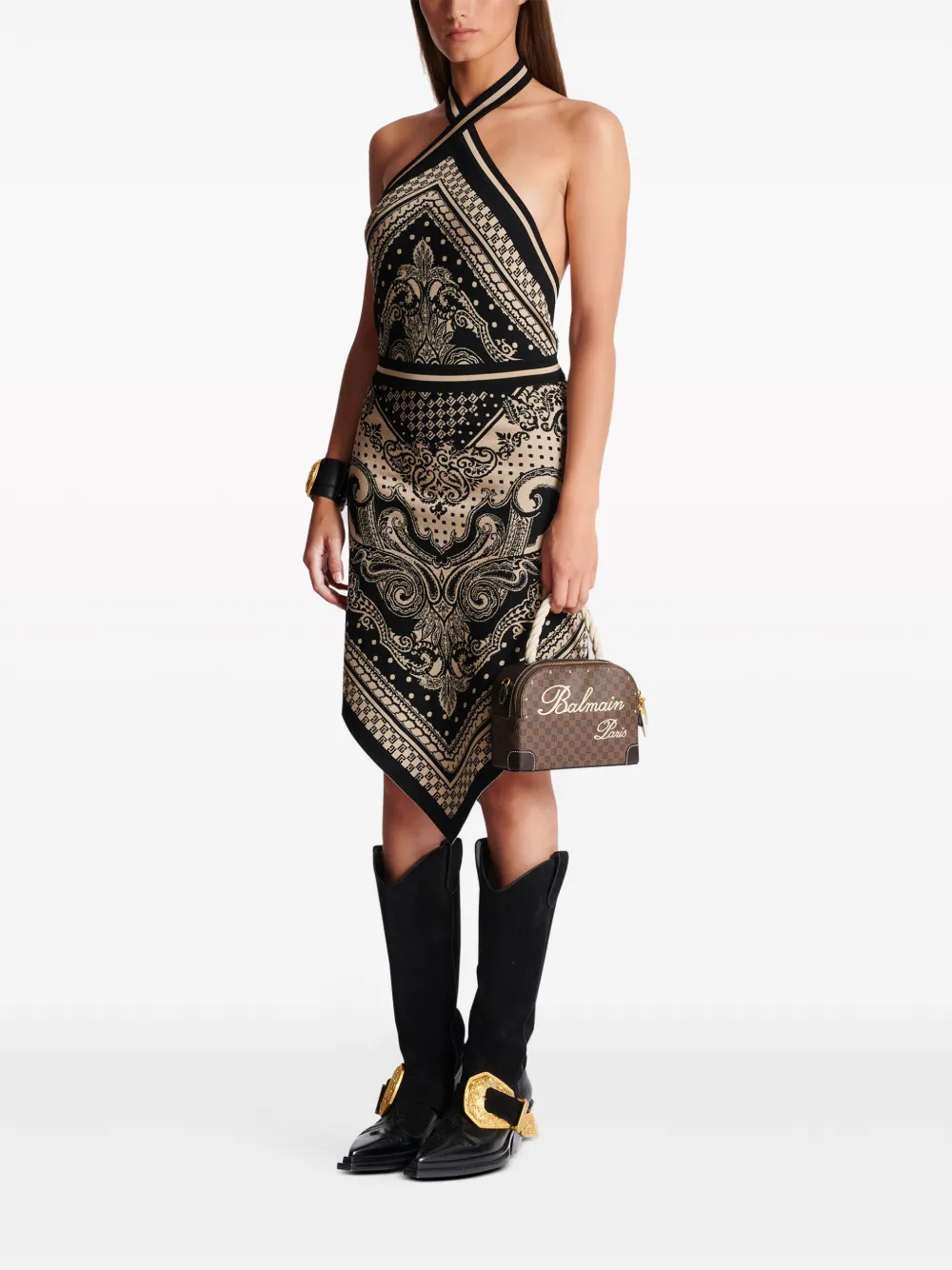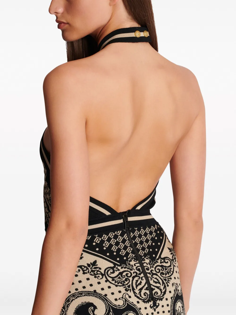 Трикотажное платье миди с вырезом халтер BALMAIN, черный