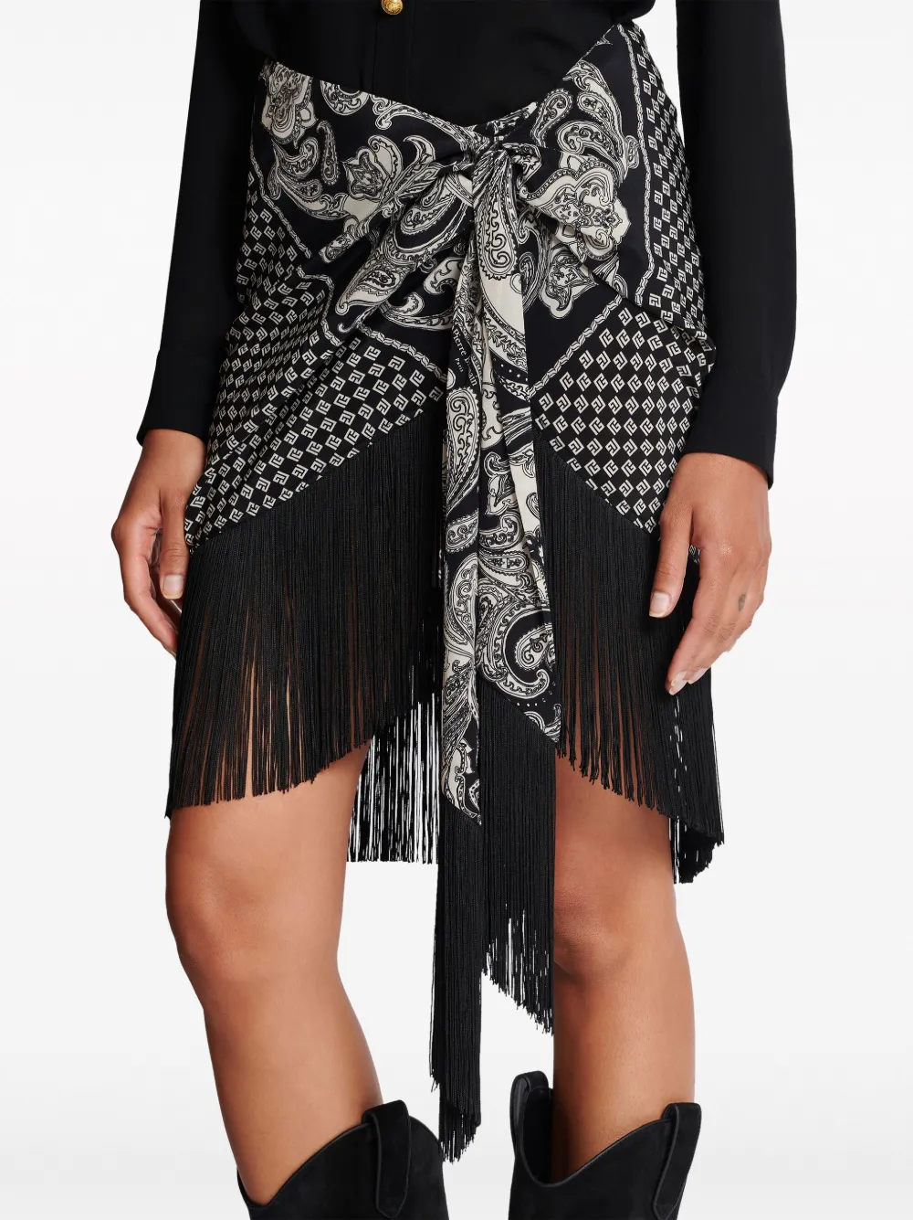 Шелковая мини-юбка с бахромой BALMAIN, черный