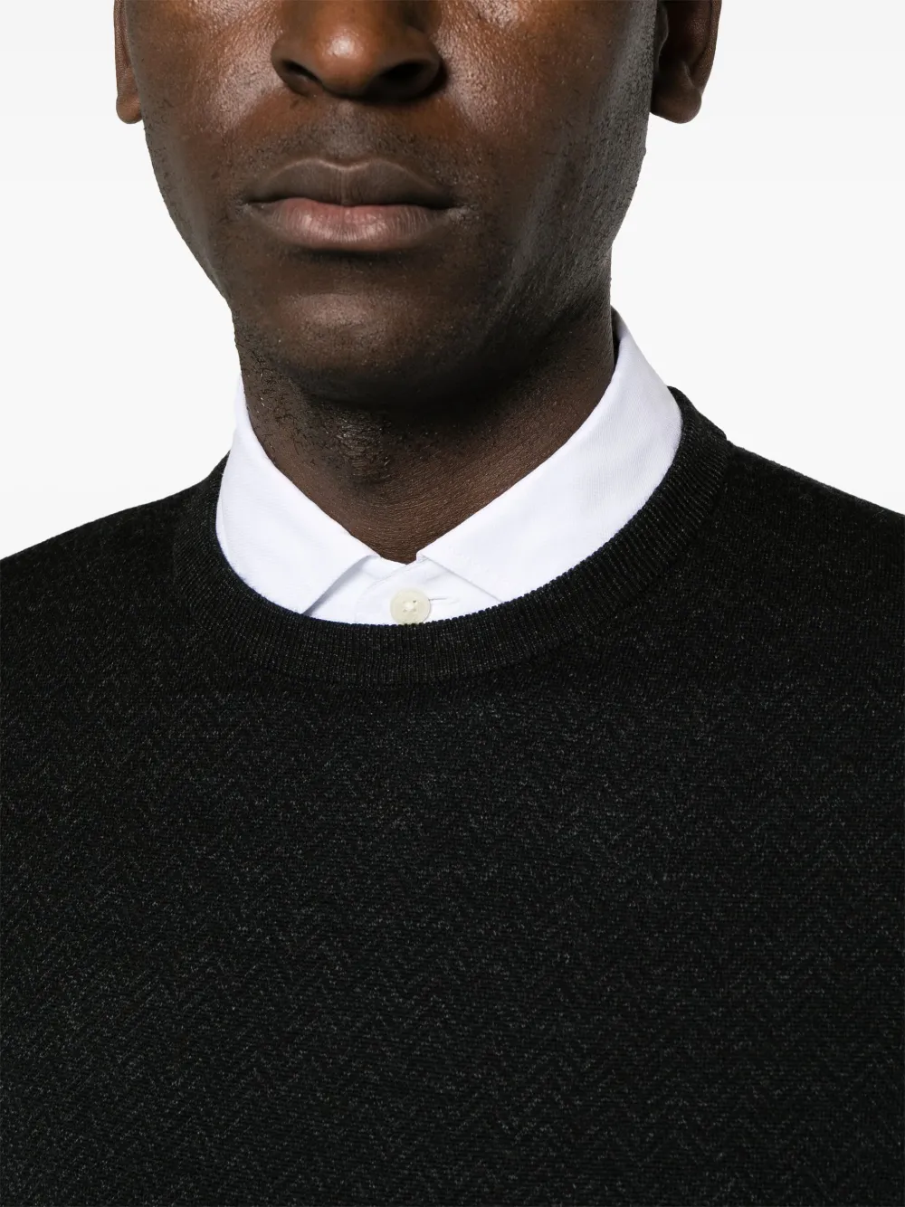 Шерстяной джемпер с узором в елочку Hackett, черный