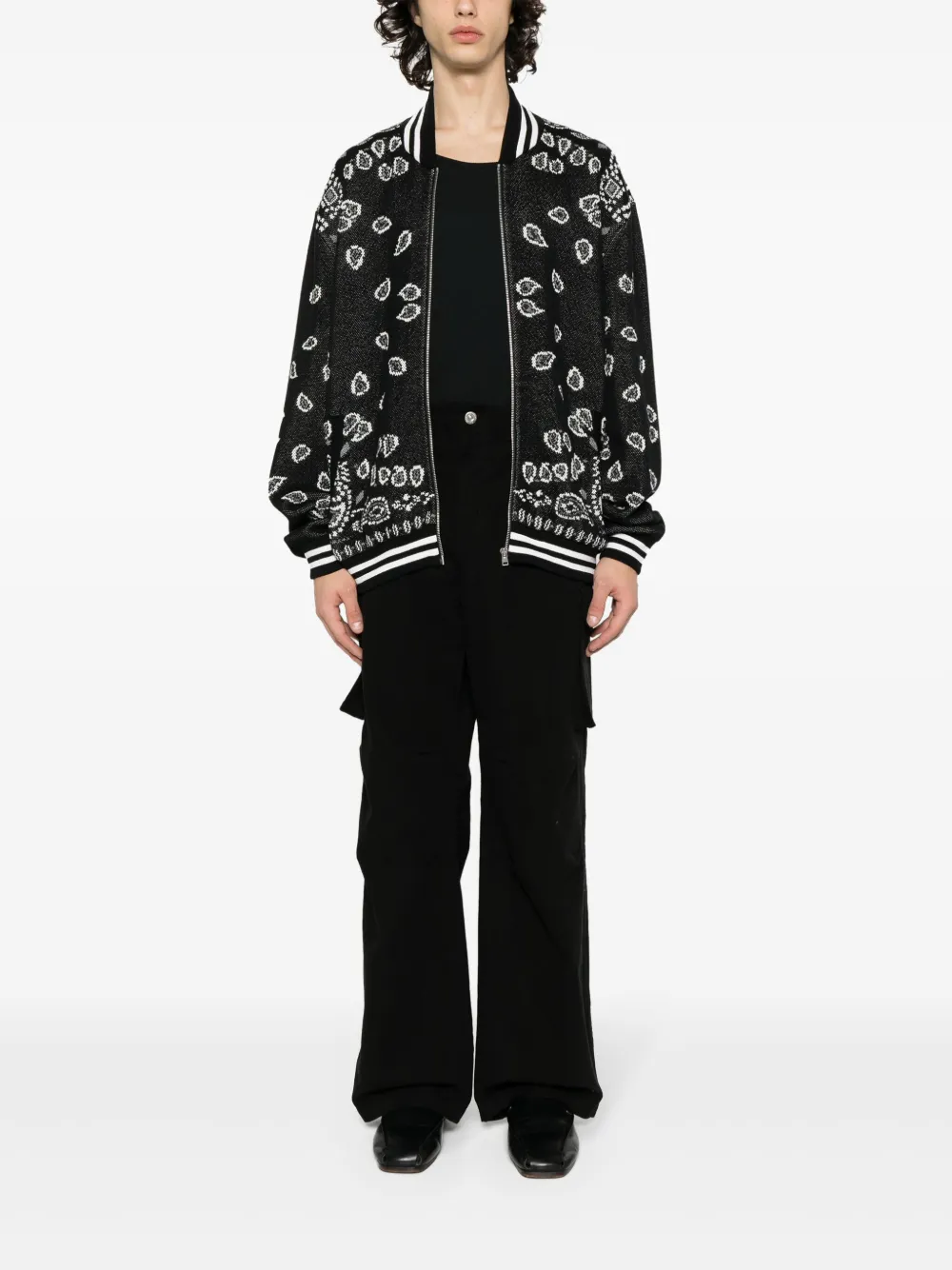 Бомбер вязки интарсия на молнии Alanui, черный