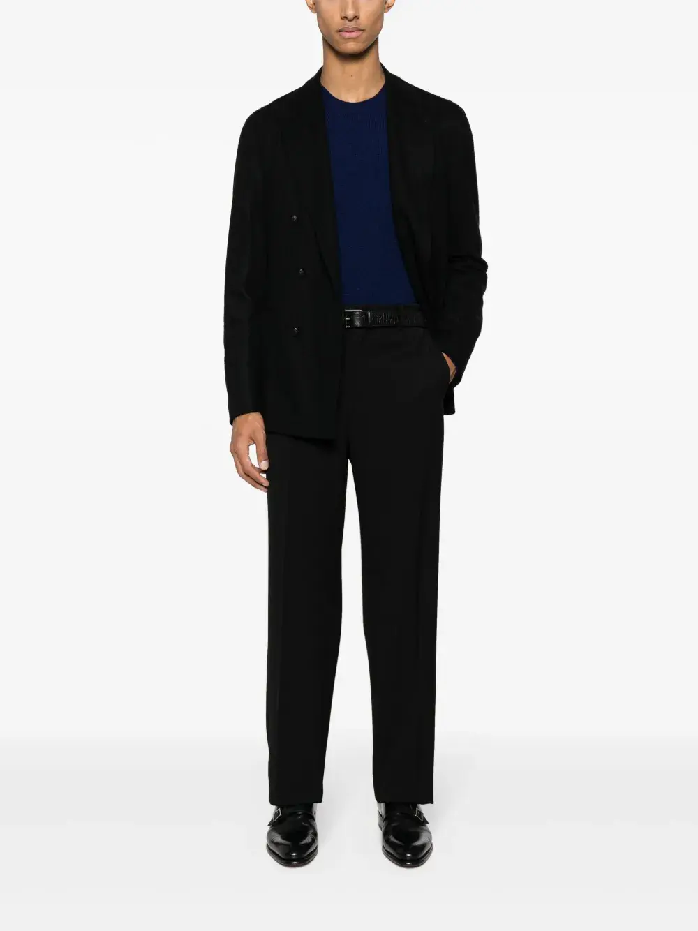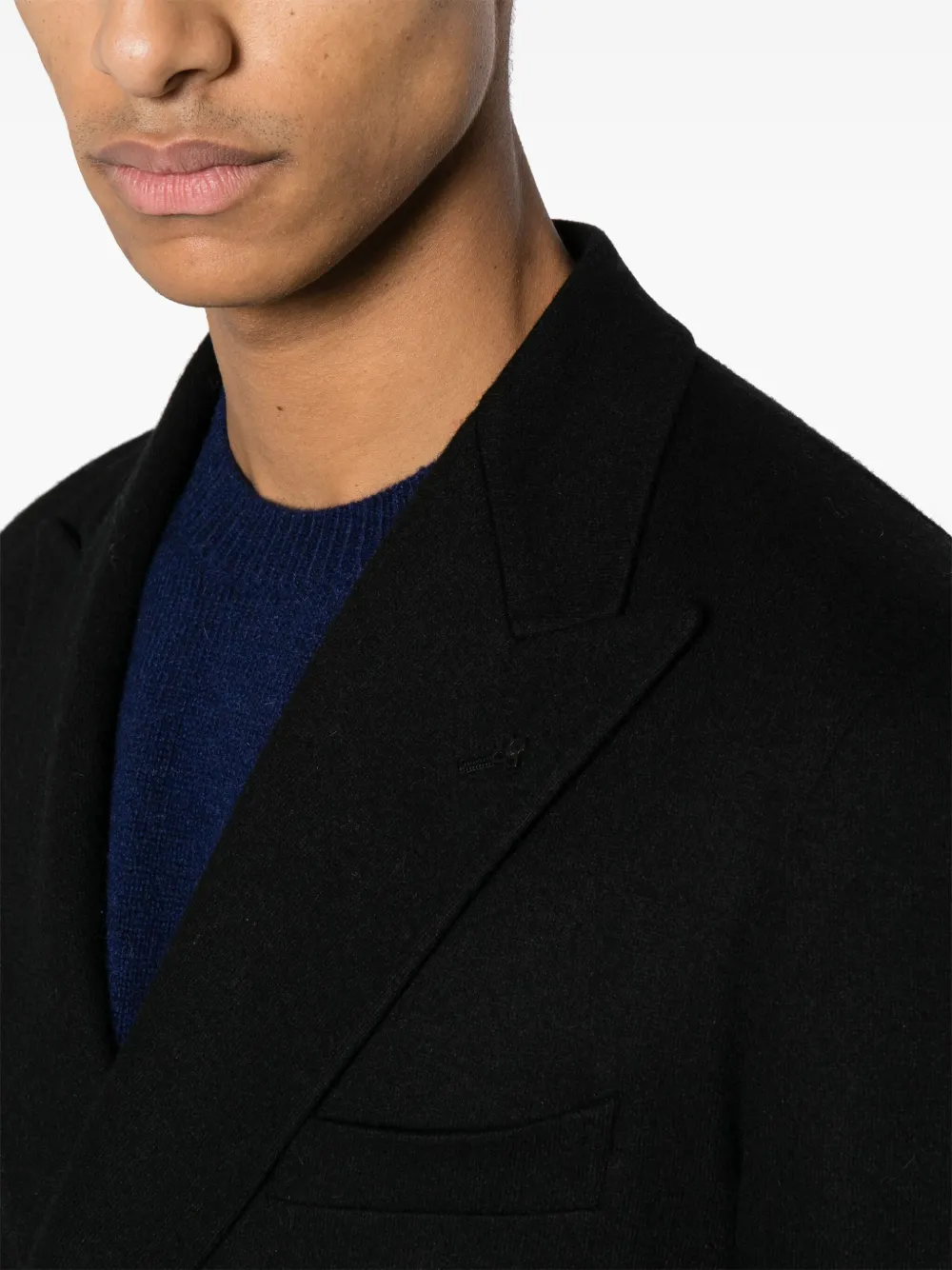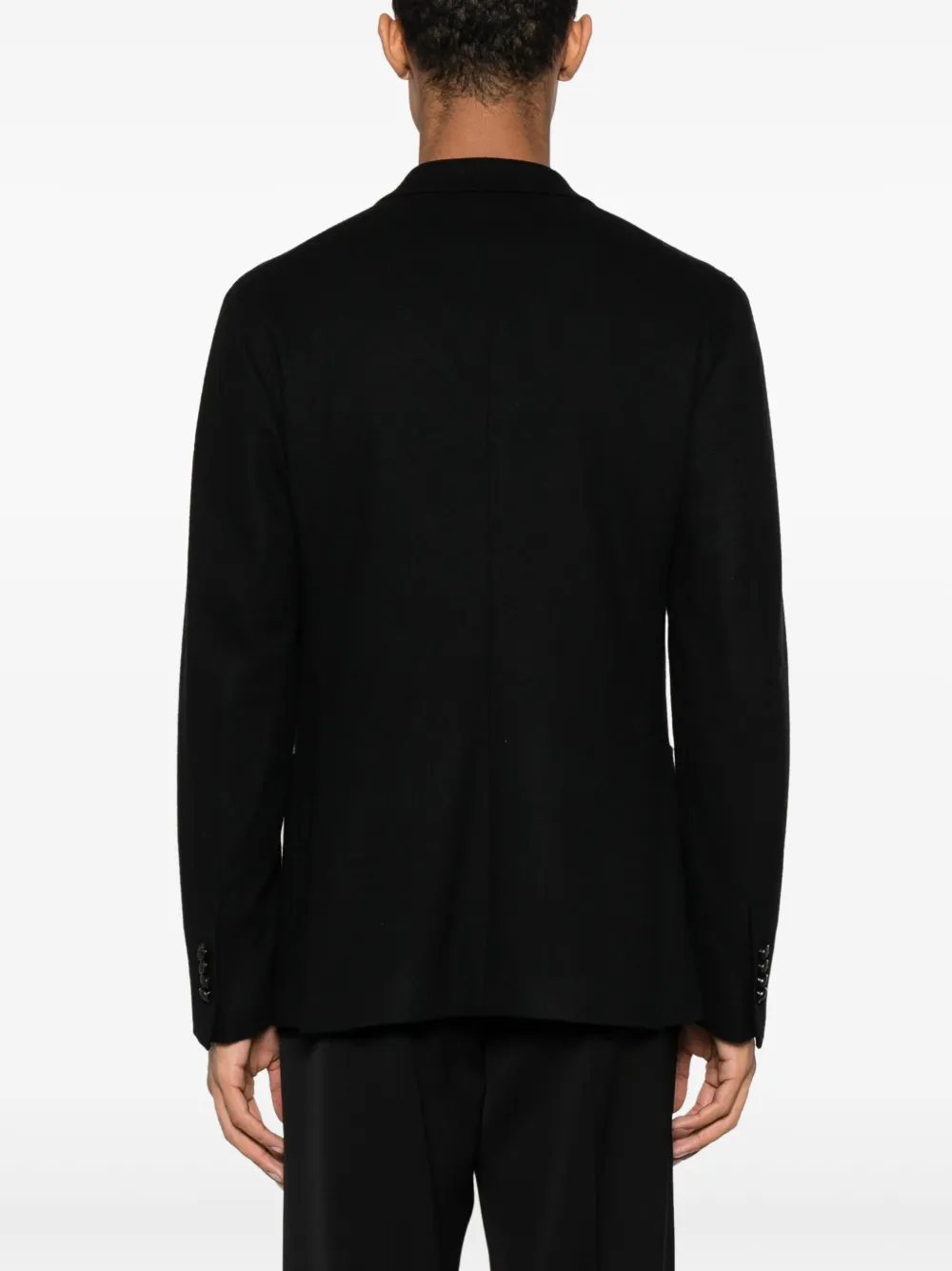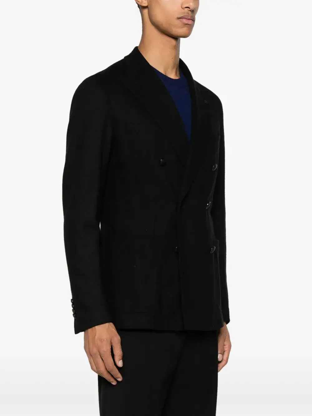 Подробнее о товаре: • черный • смесовая шерсть • широкие заостренные лацканы • аппликация логотипа на лацкане • длинные рукава • манжеты с декоративными пуговицами • пуговицы с выгравированным логотипом • прорезной карман на груди • два накладных кармана по бокам • два внутренних накладных кармана • внутренняя вставка с логотипом • нашивка с датой и именем внутри • внутренний карман на пуговице • частичная подкладка • две боковые шлицы сзади • двубортная застежка на пуговицы