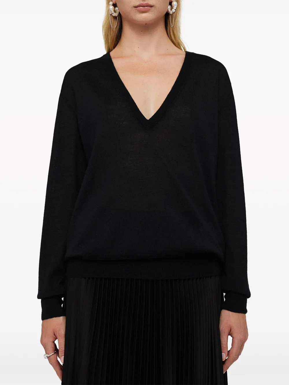 Кашемировый топ с V-образным вырезом JIL SANDER, черный