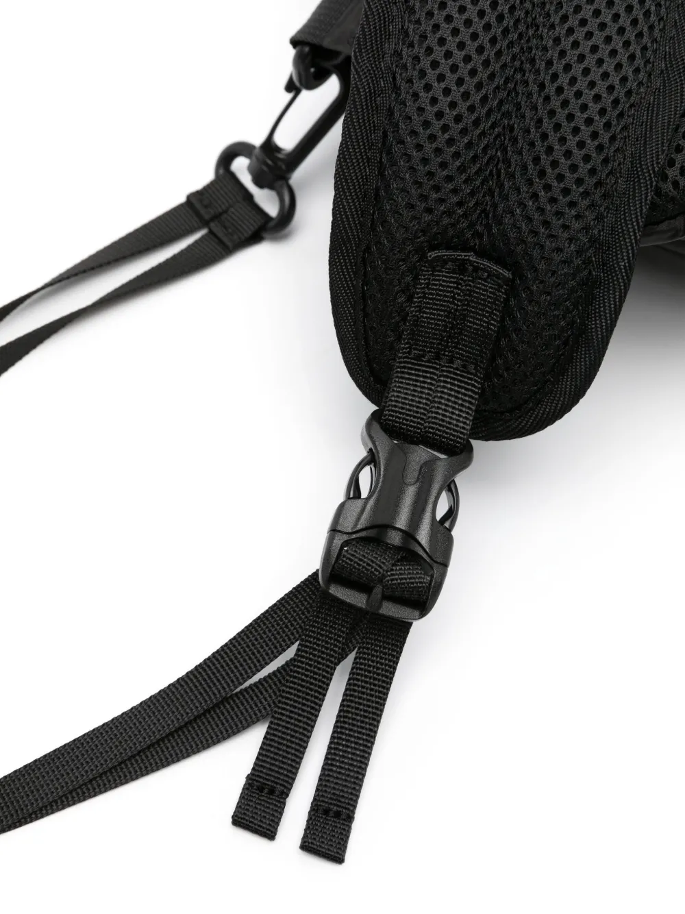 Черный, логотип спереди, бирка с логотипом, двусторонняя молния, регулируемый ремень на плечо, D-образная фурнитура, карман на молнии сзади, основное отделение, внутренний прорезной карман, внутренний карман на молнии и жаккардовая подкладка с логотипом.