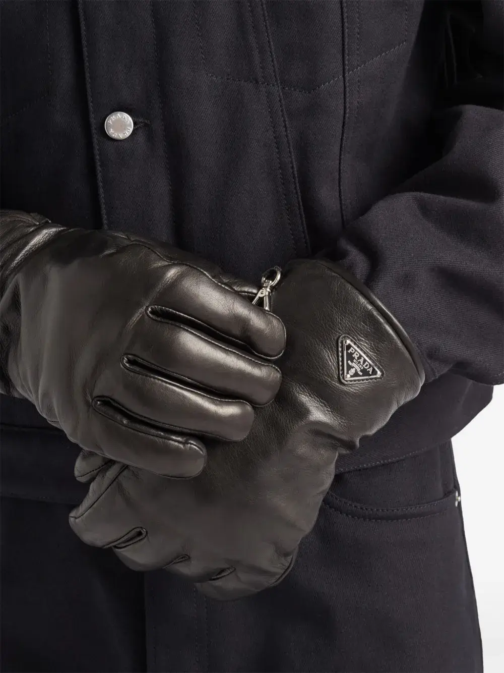 Кожаные перчатки с логотипом Prada, черный