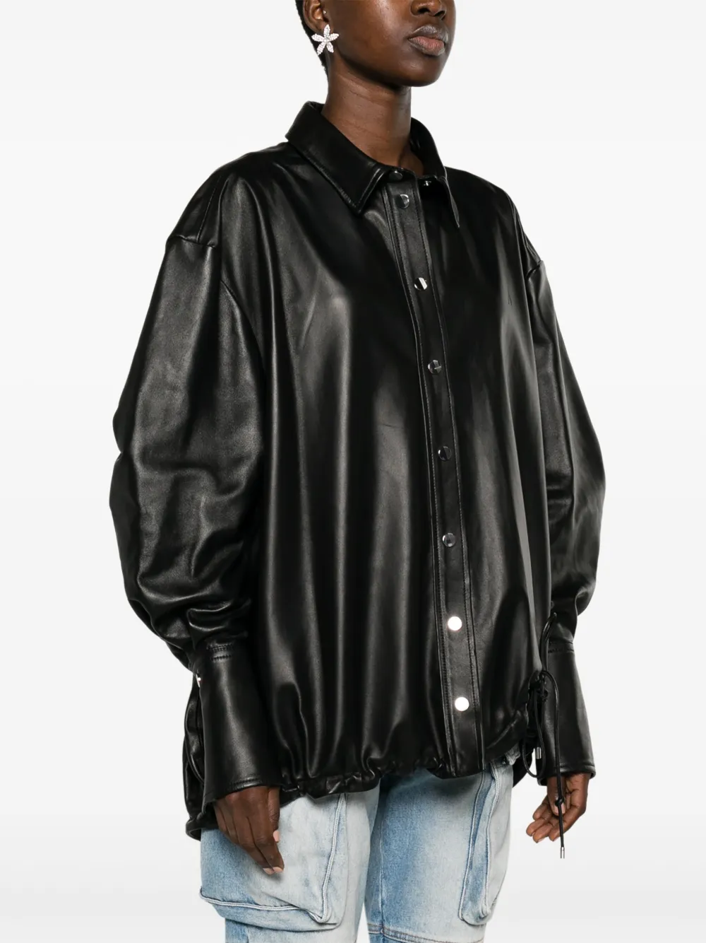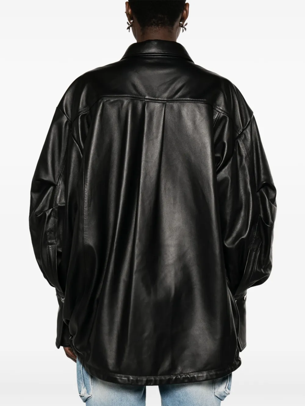 Кожаная куртка-рубашка The Attico, черный