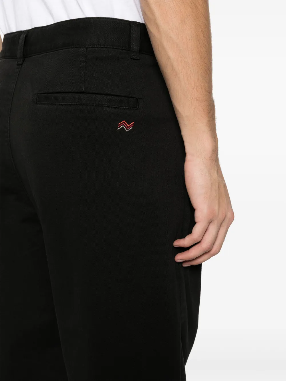 Подробнее о товаре: • черный • эластичный хлопок • ткань с твиловым переплетением • вышитый логотип сзади • петли для ремня • складки • два вшитых кармана по бокам • два прорезных кармана сзади • застежка на молнии и пуговице спереди • Полученная вами вещь может незначительно отличаться от изображенной на сайте. Эта модель, как и другие вещи Missoni, выполнена вручную, поэтому товар может незначительно отличаться от фотографий на сайте.