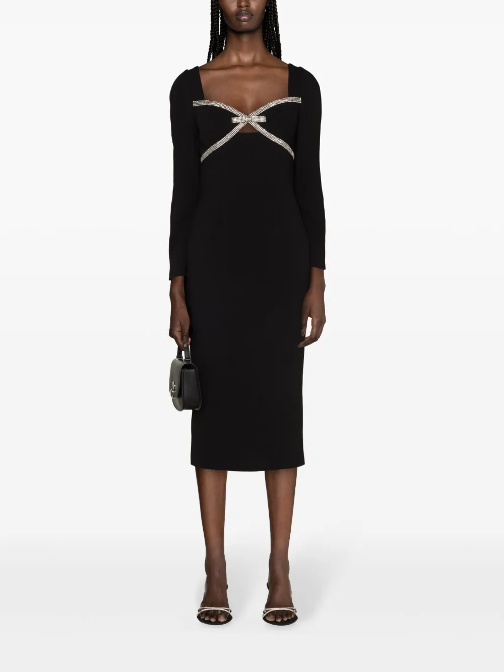 Креповое платье миди с бантом Self-Portrait, черный 57 036₽