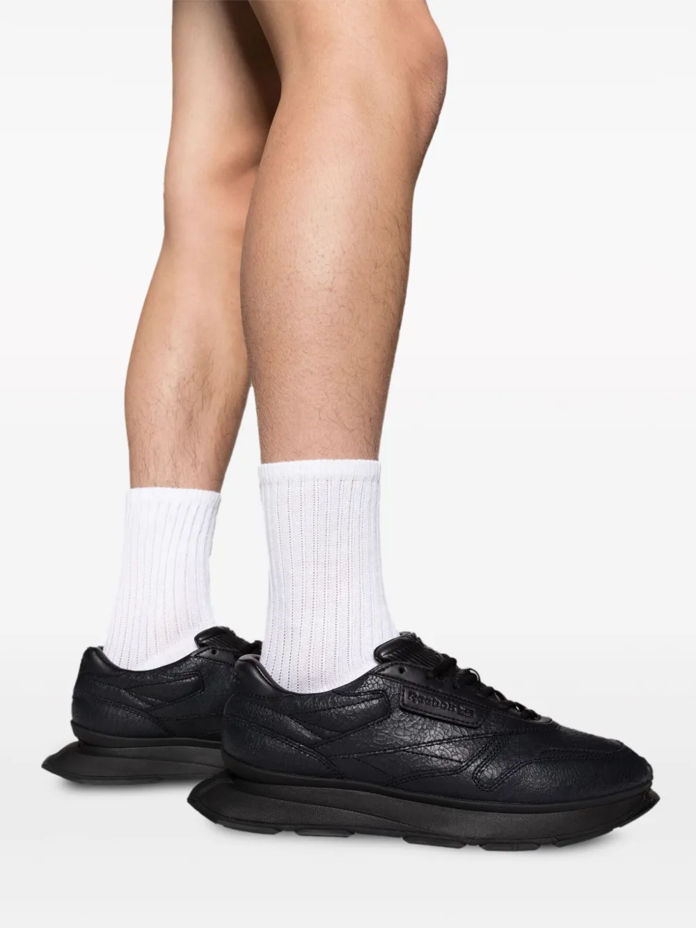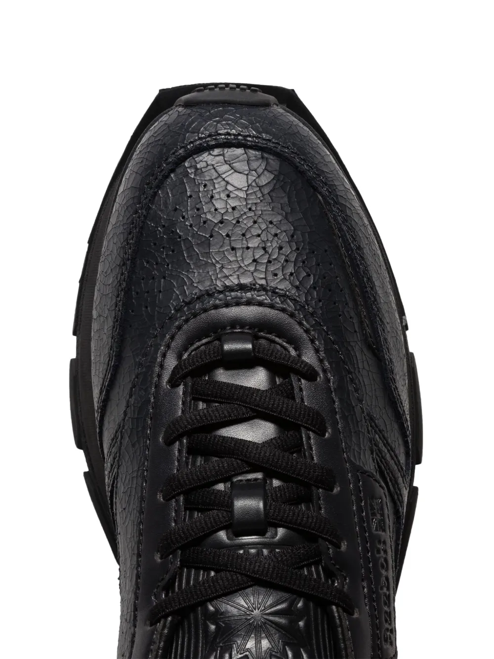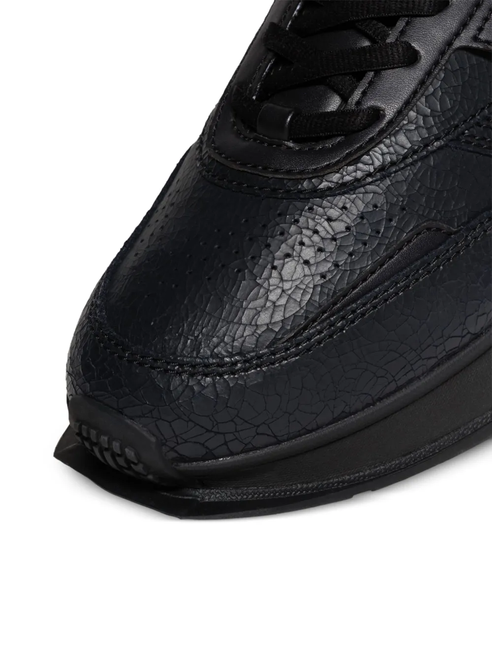 Подробнее о товаре: • черный • телячья кожа • эффект кракле • дизайн со вставками • тисненый логотип сбоку • логотип на подошве • логотип на заднике • перфорация • закругленный носок • шнуровка спереди • стелька с логотипом • массивная резиновая подошва • Это унисекс-модель. Обратите внимание, что для нее используется мужская размерная сетка.
