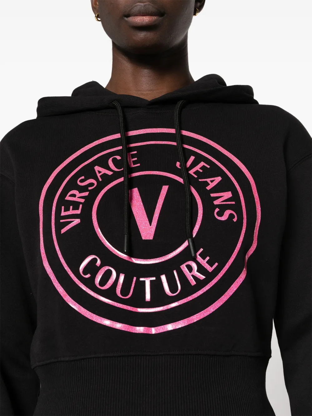 Укороченное худи с логотипом Versace Jeans Couture, черный