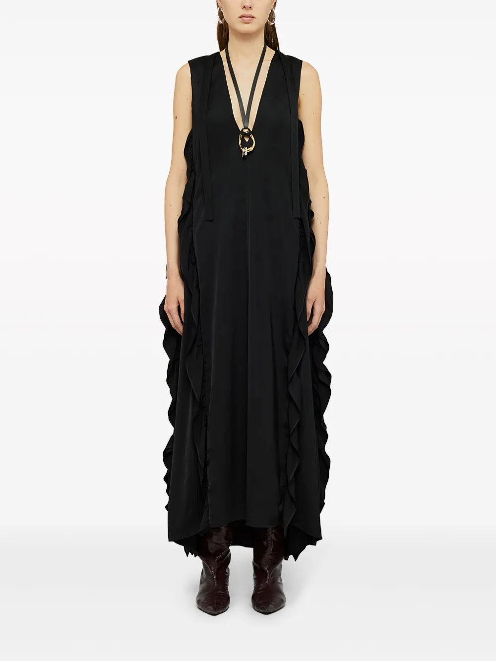 Атласное платье макси с оборками JIL SANDER, черный 94 819₽