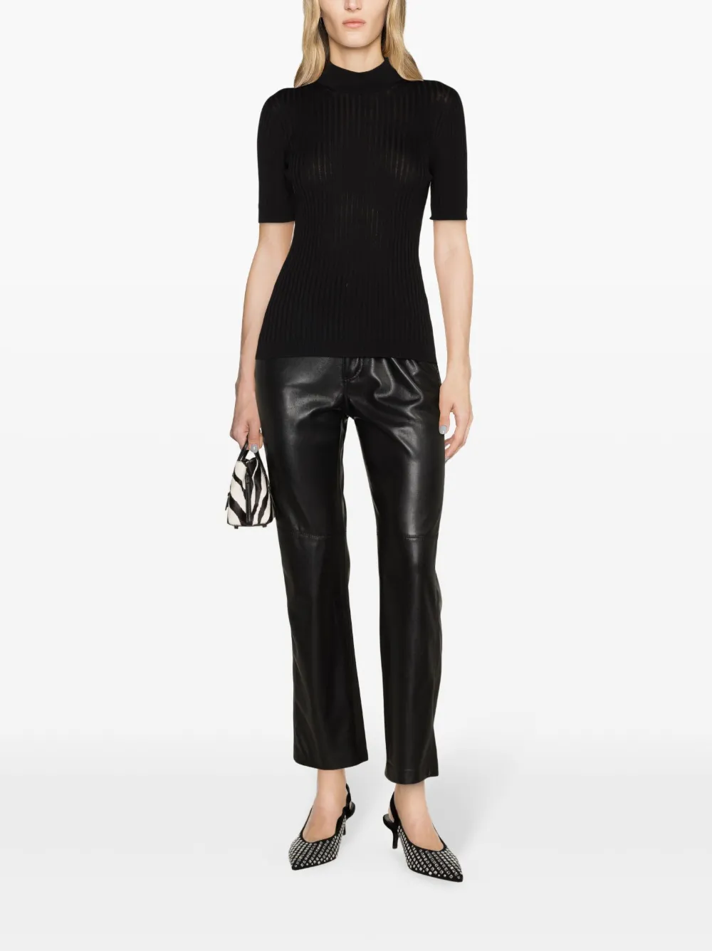 Шерстяной топ в рубчик VERSACE, черный