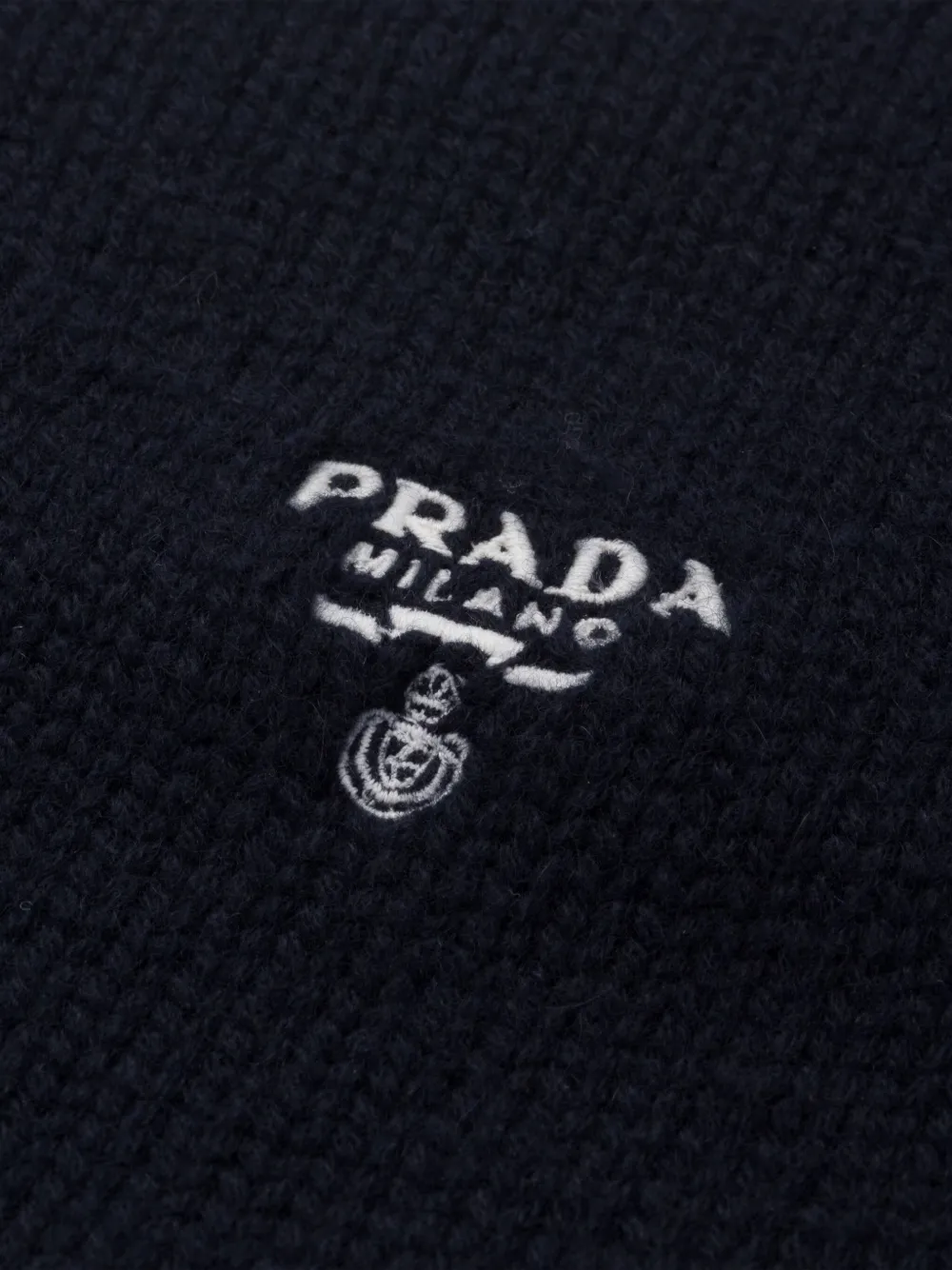 Кашемировый шарф с вышитым логотипом Prada, черный