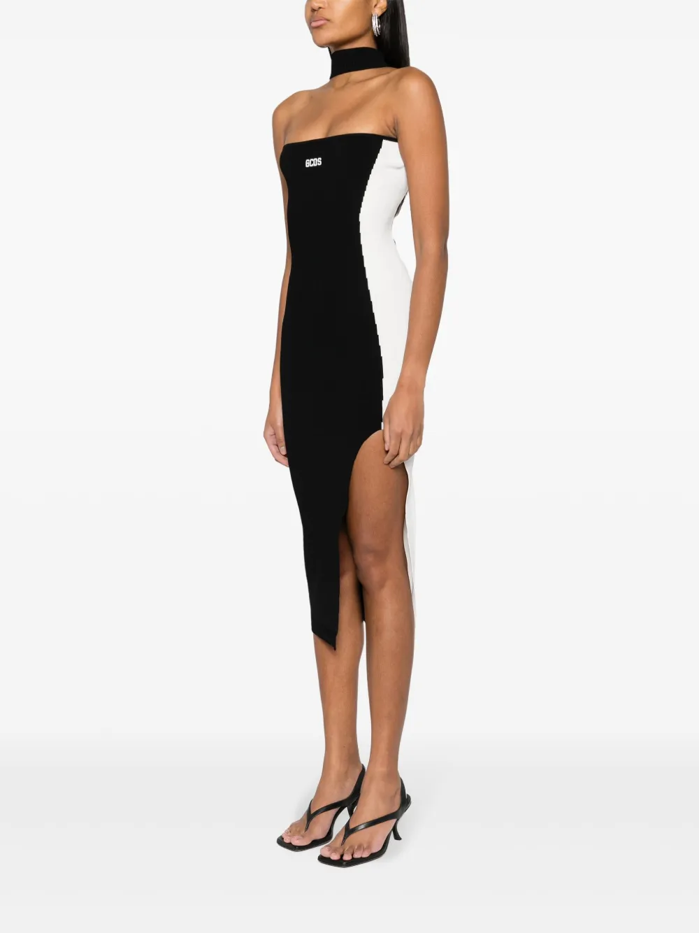 Платье в рубчик с вышитым логотипом GCDS, черный