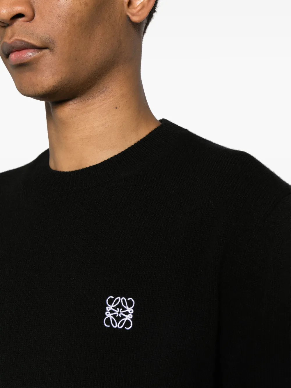 Шерстяной джемпер с вышитым логотипом LOEWE, черный