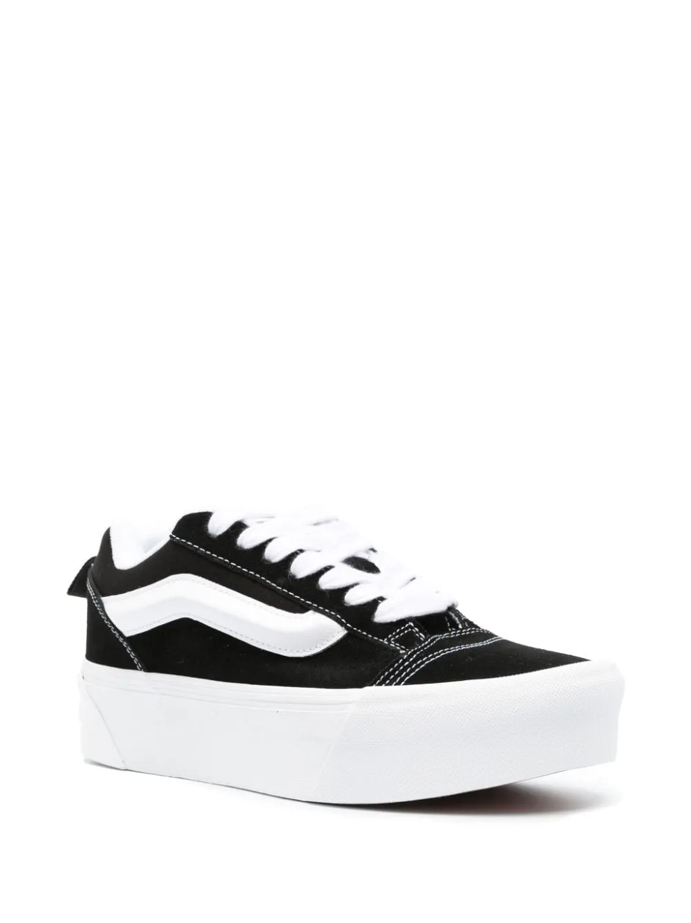 Черный/белый, замша из телячьей кожи, контрастная строчка, нашивка с логотипом сбоку, закругленный носок, шнуровка спереди, стелька с логотипом и резиновая подошва.