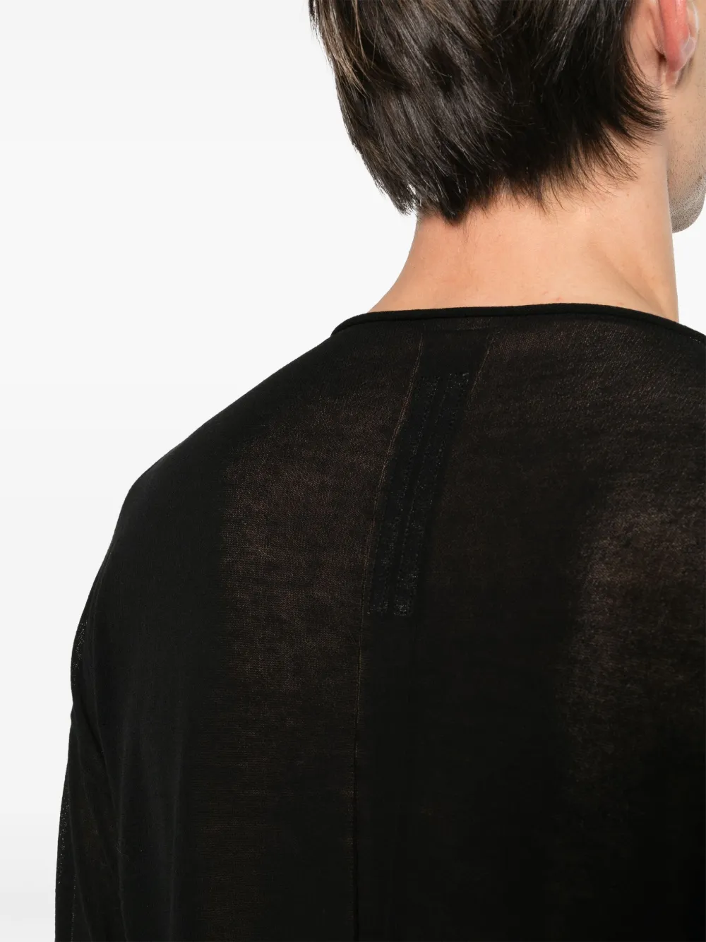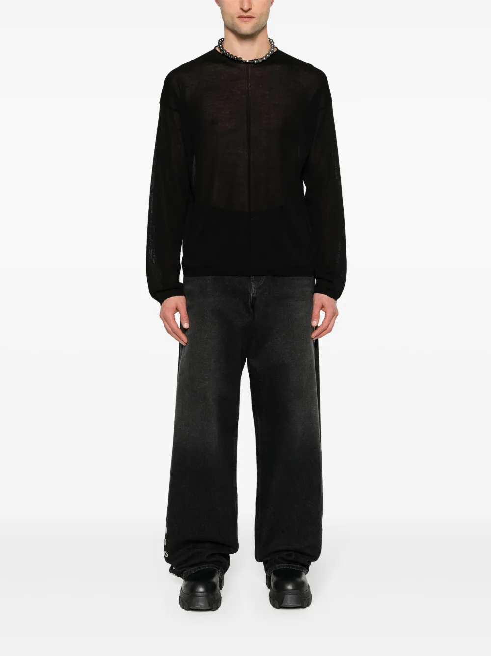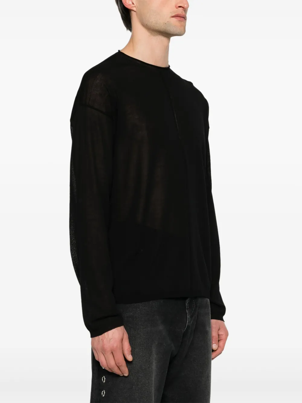 Подробнее о товаре: • черный • органический хлопок • вязаный дизайн • полупрозрачный дизайн • декоративные швы • круглый вырез • длинные рукава • подол и манжеты в рубчик • прямой подол • Ответственный выбор: В составе этого товара есть органический хлопок. Его производитель не использует химические вещества, пестициды и искусственные удобрения и внедряет методы, которые помогают сохранить биоразнообразие, улучшают качество почвы и сокращают потребление воды.