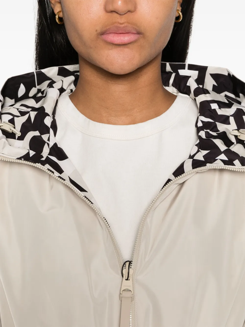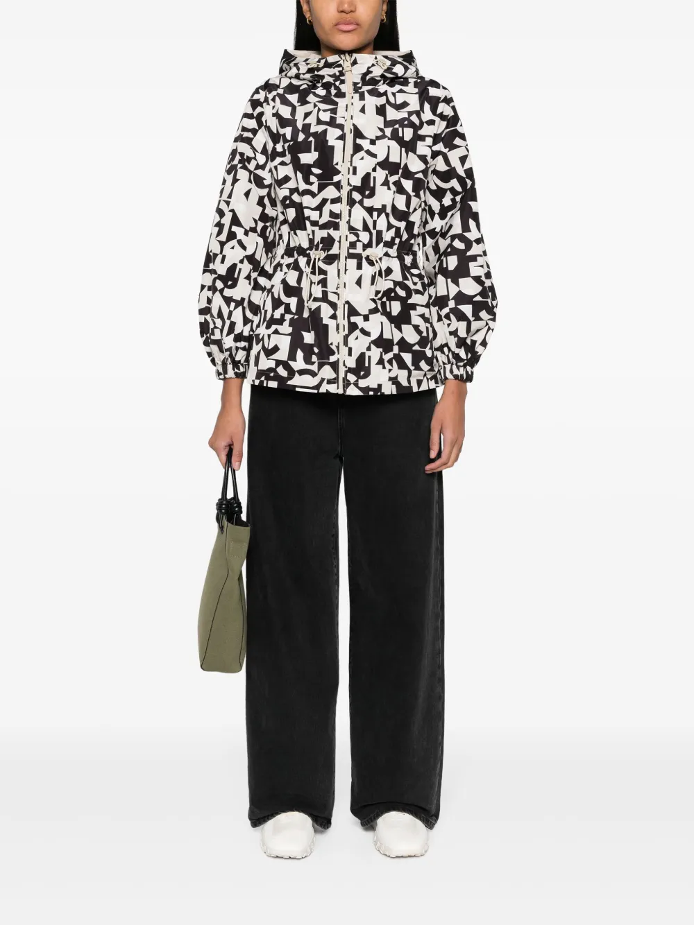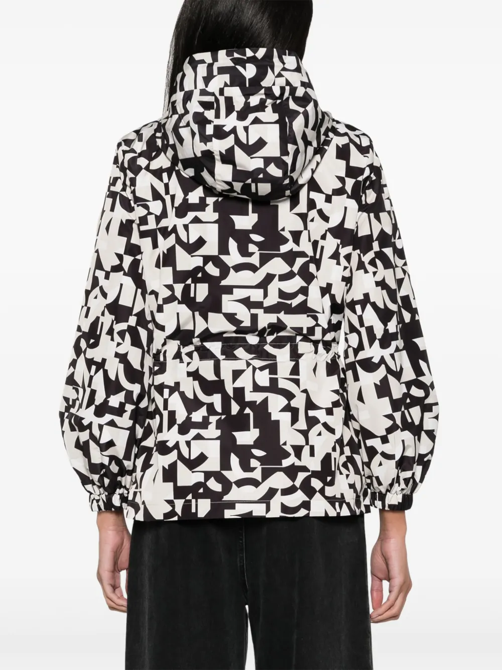 Подробнее о товаре: • черный/разноцветный • переработанный полиэстер • плотный внешний материал • двухсторонний дизайн • водонепроницаемая модель • водоотталкивающий материал • ветронепроницаемый материал • сплошной абстрактный принт • затягивающийся на шнурок капюшон • длинные рукава • эластичные манжеты • пояс на шнурке • два кармана на молнии по бокам • застежка на молнии спереди