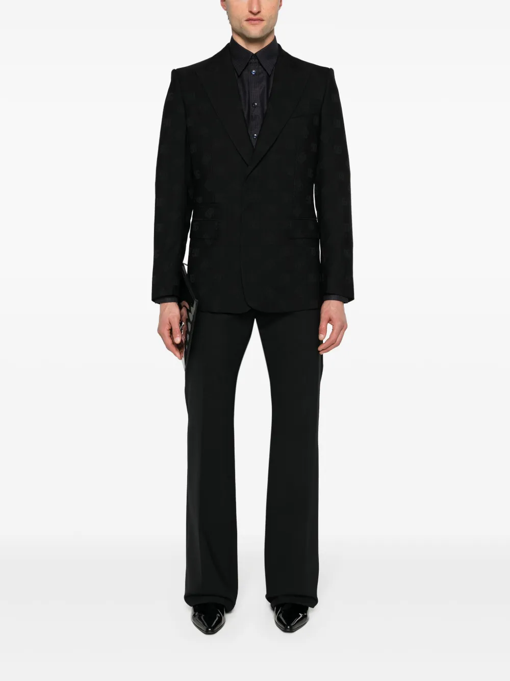 Подробнее о товаре: • черный • смесовая шерсть • переплетенный дизайн • жаккард с монограммой • декоративный шов • заостренные лацканы • подплечники • длинные рукава • манжеты на пуговицах • шлица по центру сзади • прорезной карман на груди • прорезной карман спереди • два передних кармана с клапанами • три внутренних прорезных кармана • потайная пуговичная застежка спереди • закругленный подол • цельная подкладка