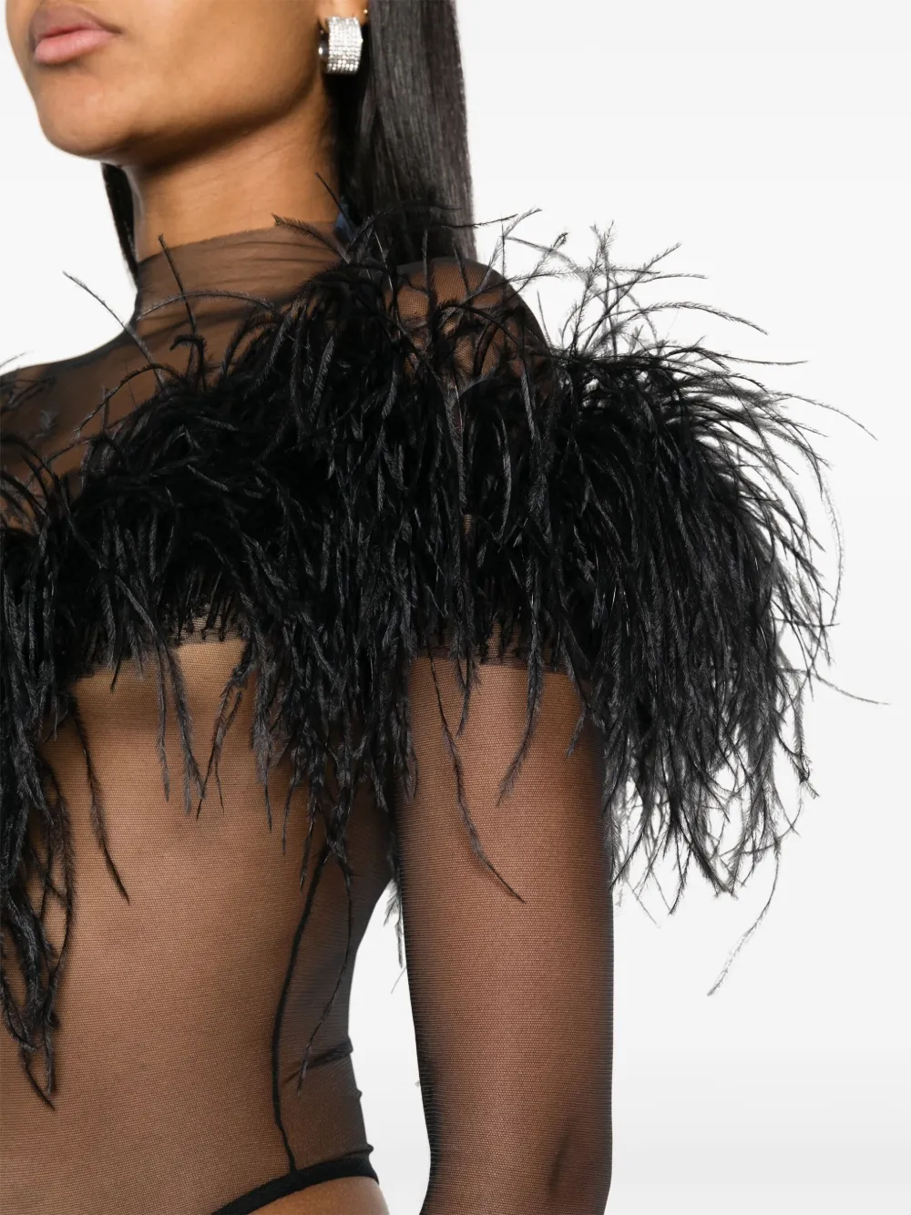Сетчатое боди с перьями Mugler, черный 123 585₽