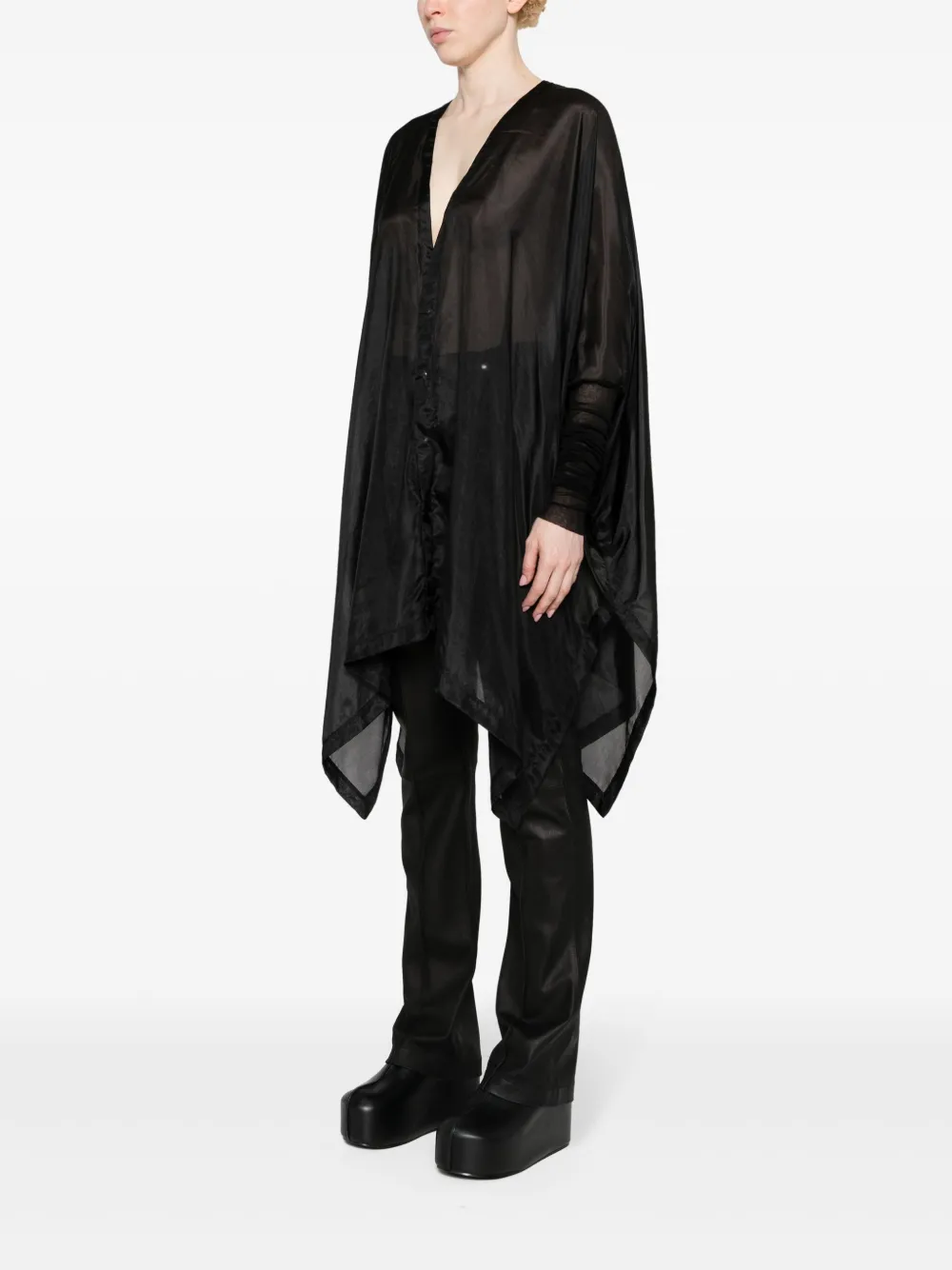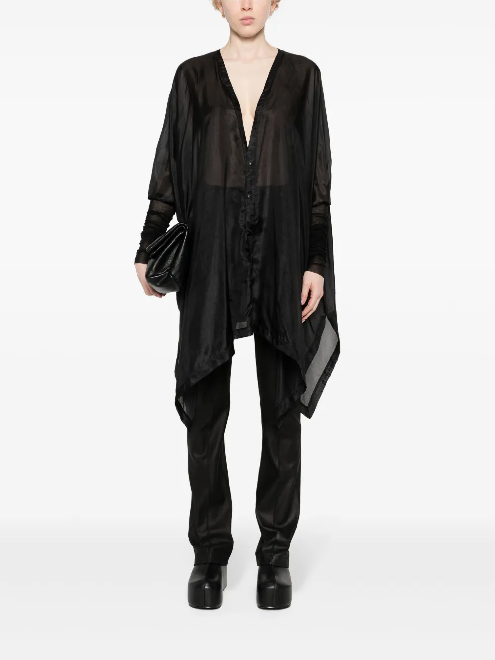 Шелковая рубашка с рукавами в рубчик Rick Owens, черный
