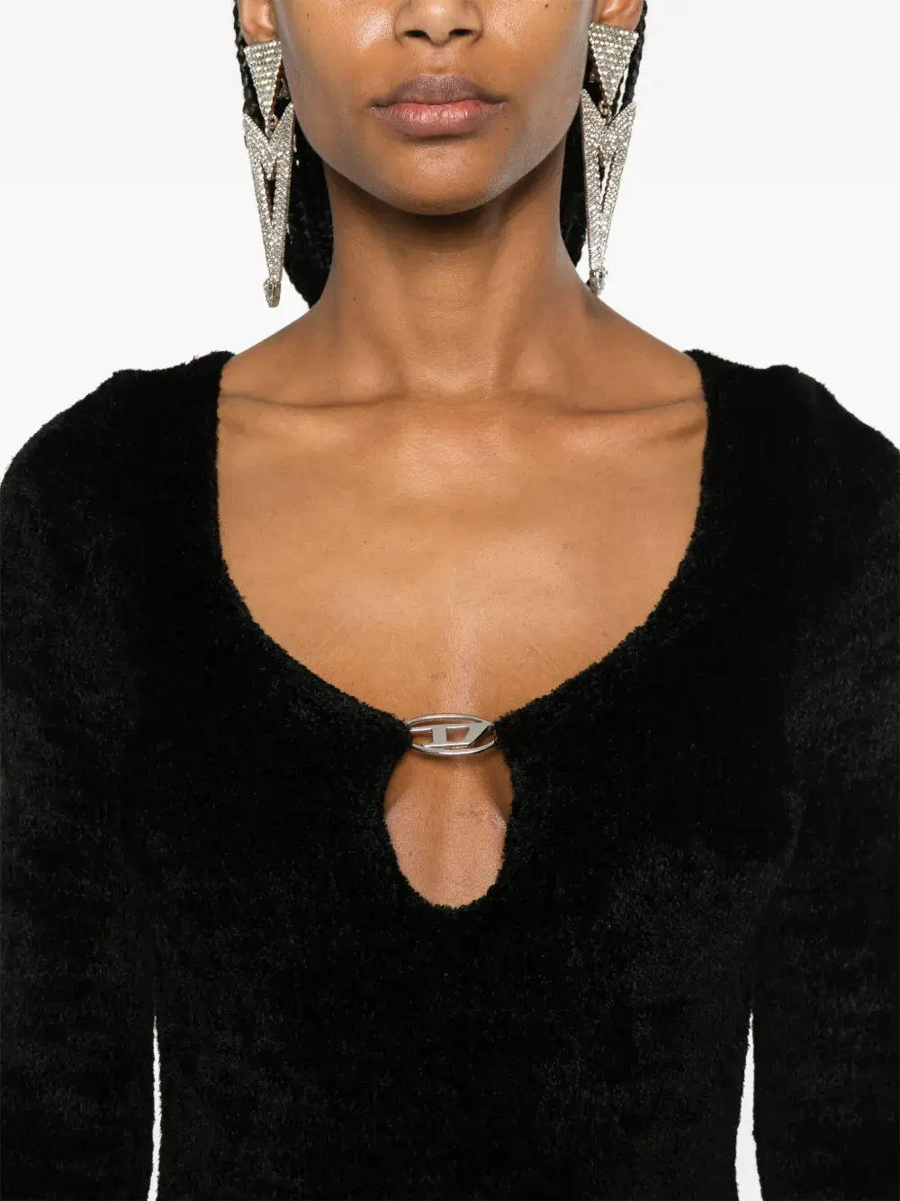 • глубокий V-образный вырез с логотипом Oval D