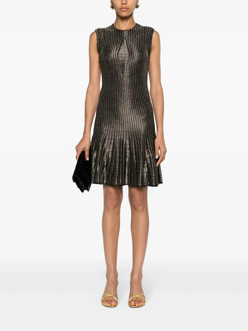 Расклешенное платье с эффектом металлик Alexander McQueen, черный
