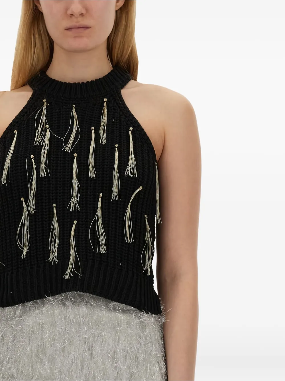 Топ с вырезом халтер и кисточками Alysi, черный