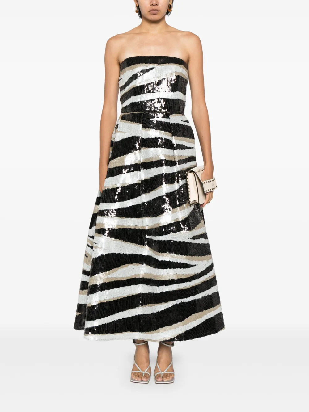 Платье без бретелей с пайетками Elie Saab, черный