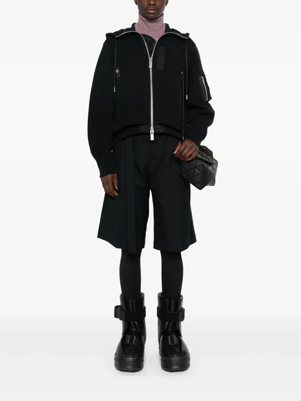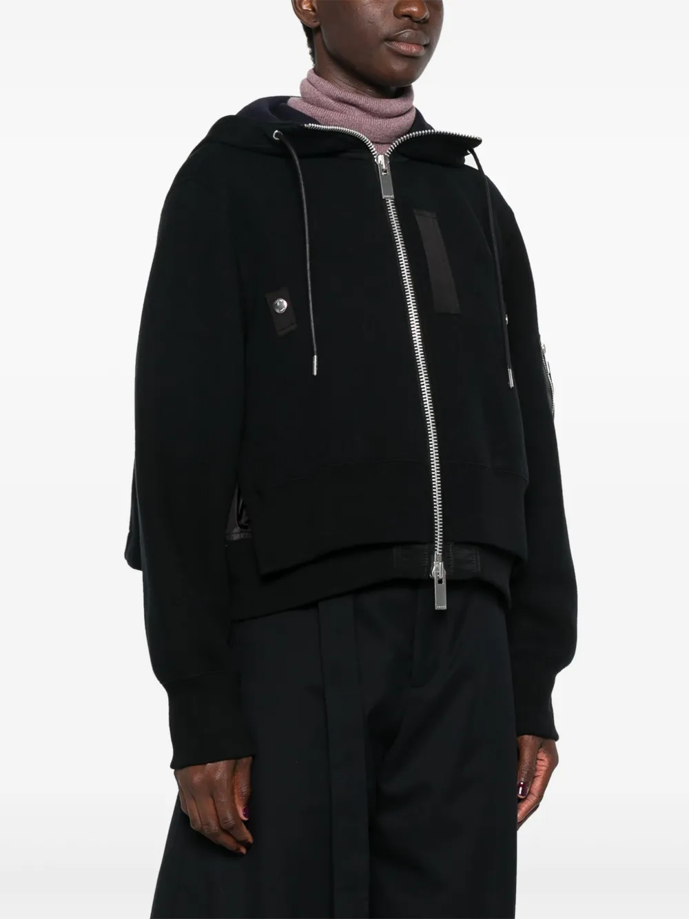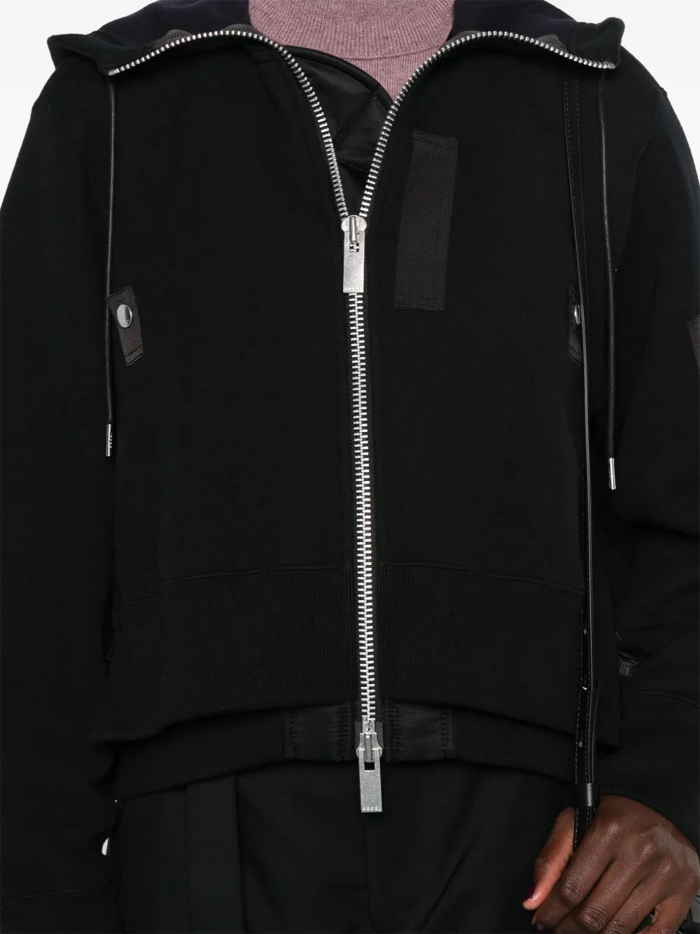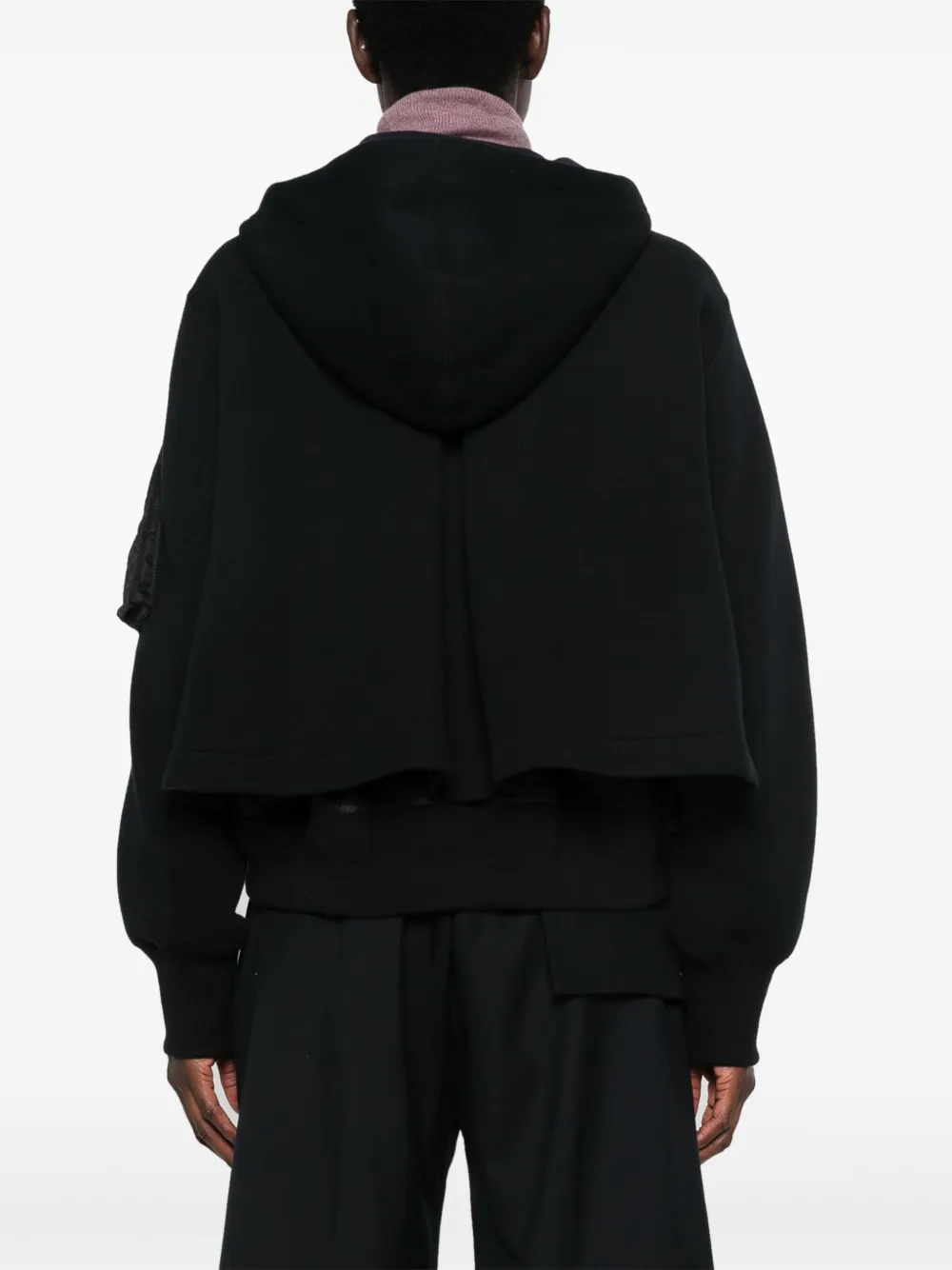 Многослойный бомбер с капюшоном SACAI, черный