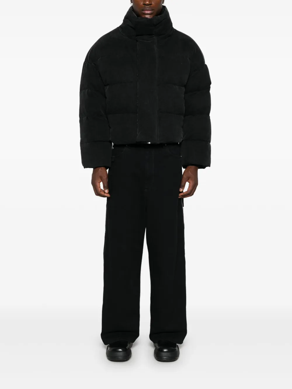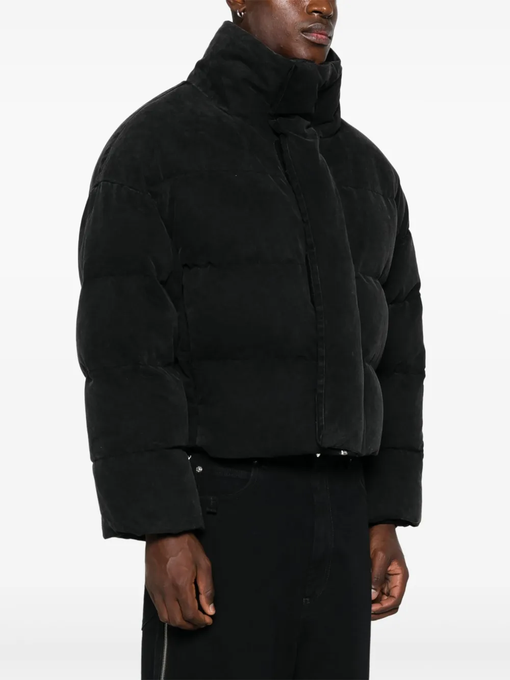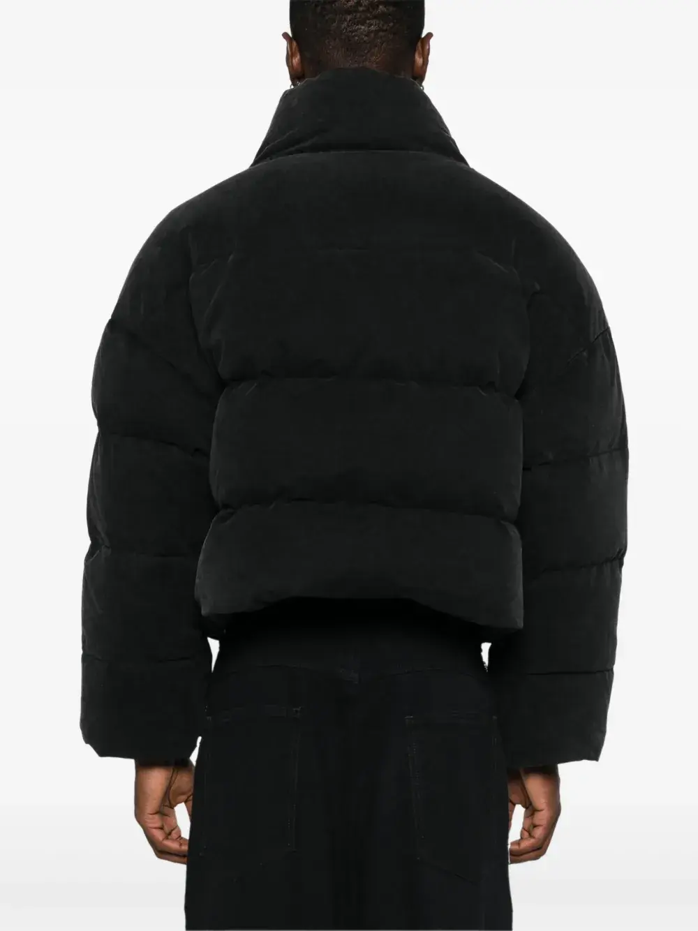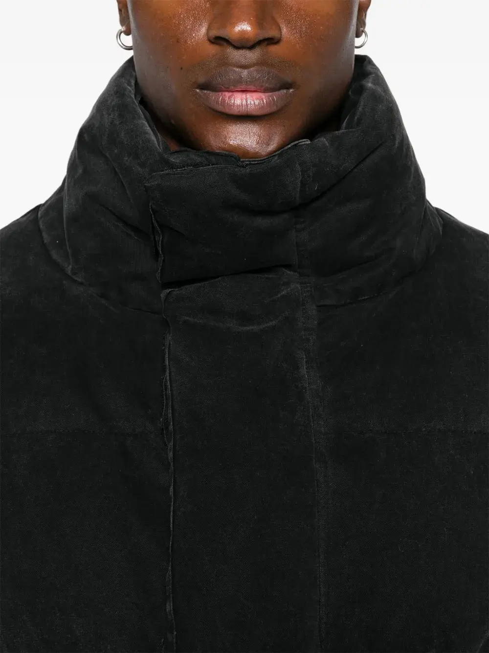 Подробнее о товаре: • черный • хлопок • ткань с твиловым переплетением • наполнитель из смеси пуха и пера • дутый материал • стеганная модель • потайная застежка на молнии и липучке • воротник-стойка • длинные рукава • два вшитых кармана по бокам • манжеты в рубчик • внутренний карман на молнии • цельная подкладка • эластичный пояс на шнурке • Это унисекс-модель. Обратите внимание, что для нее используется мужская размерная сетка.