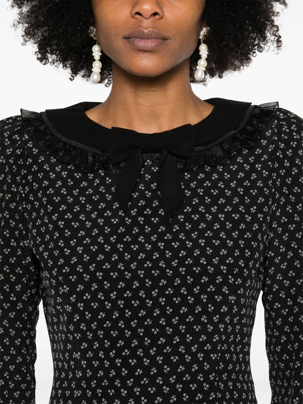 Шелковое платье мини с цветочным принтом Alessandra Rich, черный