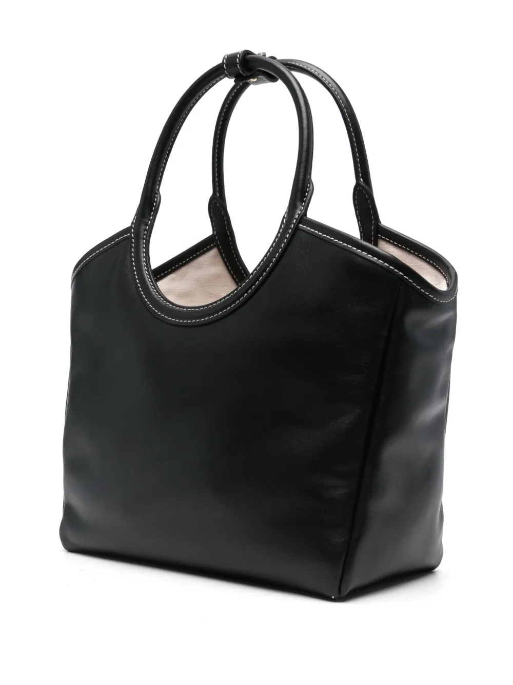 Подробнее о товаре: • черный • телячья кожа • гладкая текстура кожи • дизайн с открытым верхом • две закругленные верхние ручки • регулируемый ремешок для закрепления верхних ручек • съемный регулируемый ремень на плечо • контрастная строчка • нашивка с логотипом спереди • основное отделение • металлический логотип внутри • два внутренних кармана на молнии • парусиновая подкладка • В комплект входит мешок-пыльник для хранения.