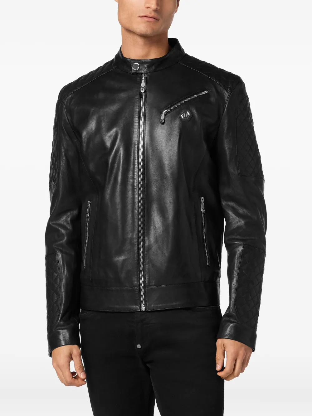 Кожаный бомбер-пуховик Philipp Plein, черный