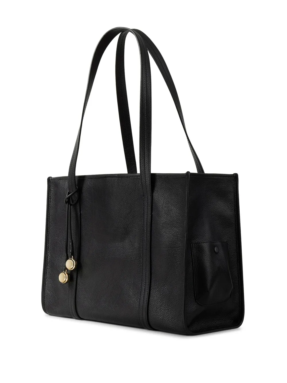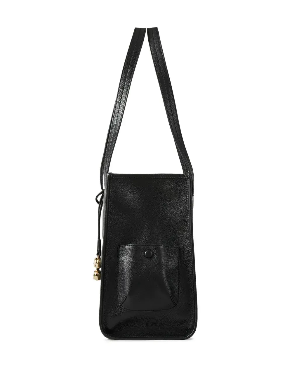 Черный элегантный дизайн, две верхние ручки, накладной карман, золотистая отделка, просторное основное отделение