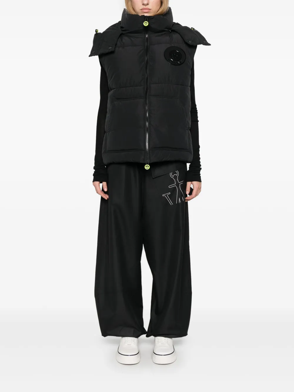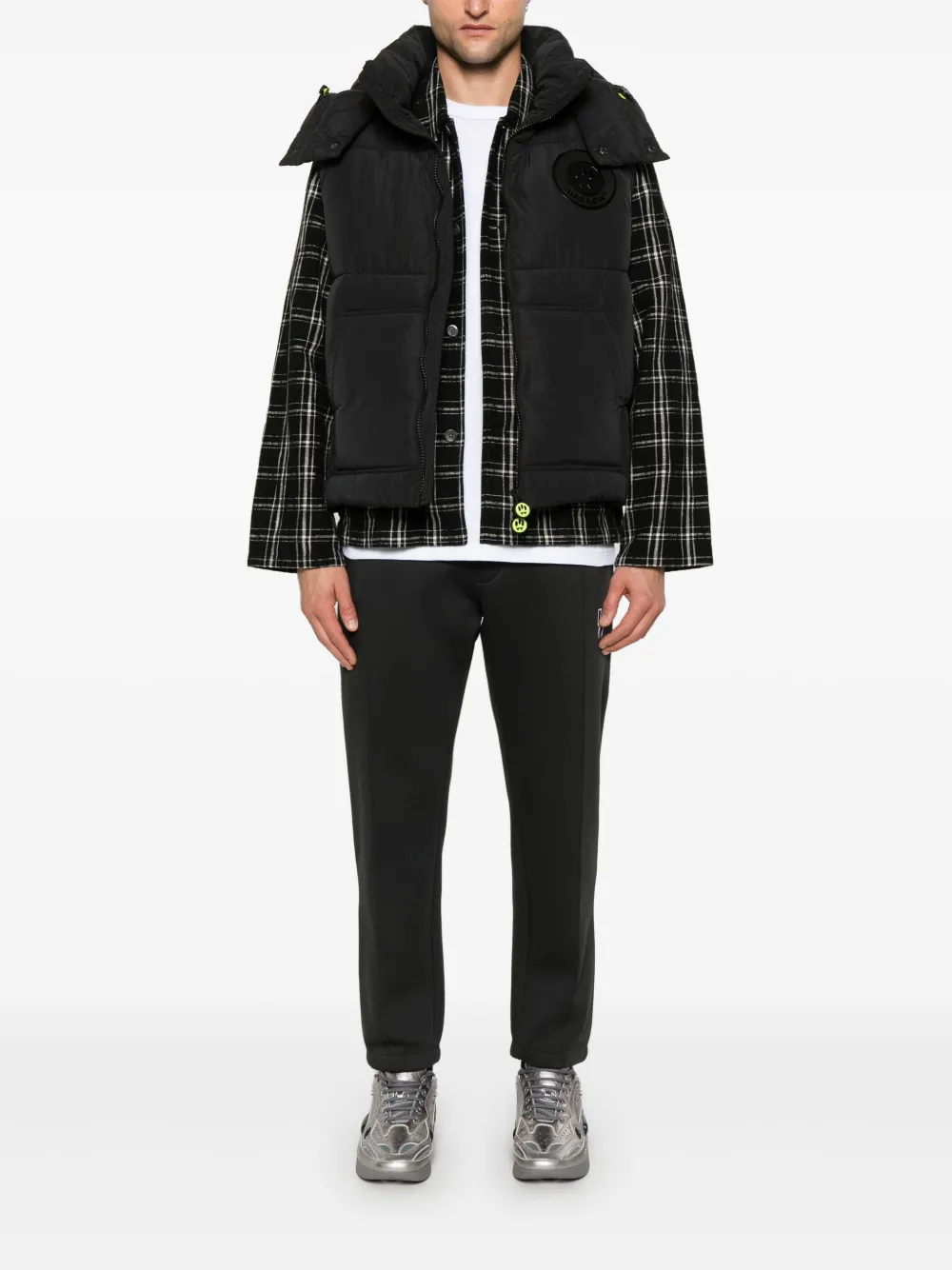 Подробнее о товаре: • черный • дутый материал • стеганная модель • двусторонняя молния спереди • пуллер с логотипом • высокий воротник • съемный капюшон • без рукавов • логотип-аппликация • два передних кармана • цельная подкладка • внутренний накладной карман • резинки с застежкой тогл внутри • прямой подол • Это унисекс-модель. Обратите внимание, что для нее используется мужская размерная сетка.