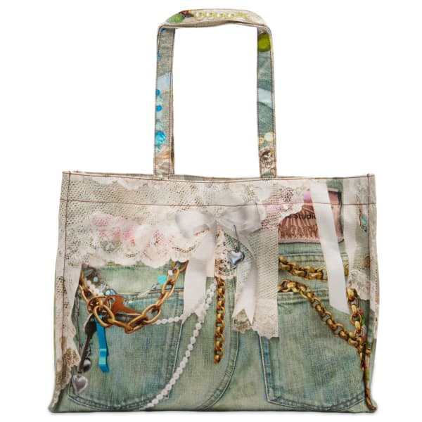 Сумка Acne отлично справляется с этой джинсовой сумкой-шоппером, украшенной весьма убедительным принтом с эффектом тромплёй, кружевом, джинсовой тканью и яркими подвесками. В ней достаточно места для всего необходимого, и она станет идеальной повседневной сумкой — такой, без которой вы просто не сможете обойтись.