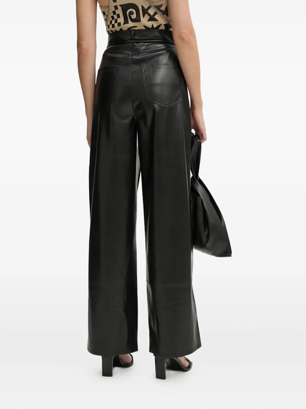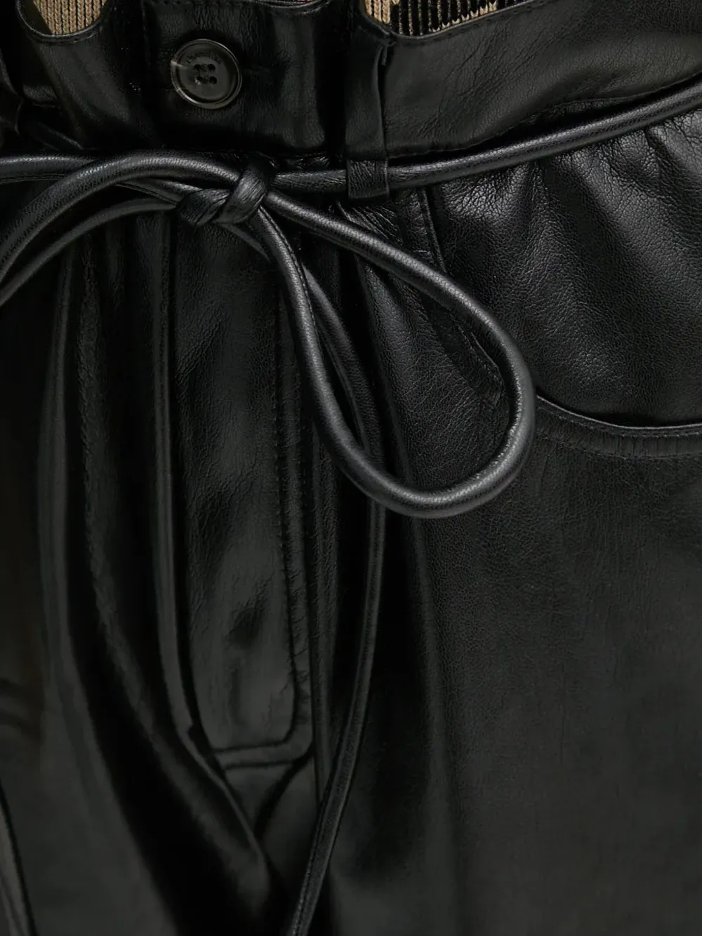 Черная искусственная кожа с завязкой на талии и высокой талией, гульфик на пуговицах