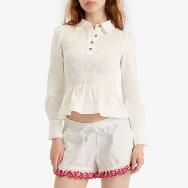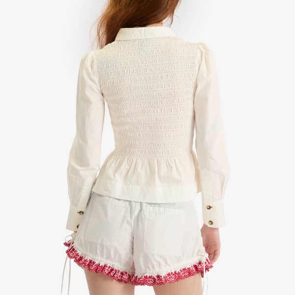 Damson Madder, известный своими игривыми деталями и экологичным дизайном, предлагает изысканный базовый предмет гардероба – рубашку Hazel с присборкой. Эта облегающая модель выполнена из органического хлопка и отличается присборенным лифом, застежкой на пуговицы спереди и баской по низу. Новый взгляд на классический крой воплощает фирменное сочетание экологичности и эксклюзивного стиля бренда.