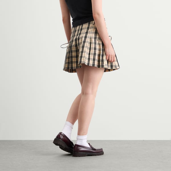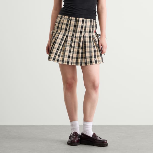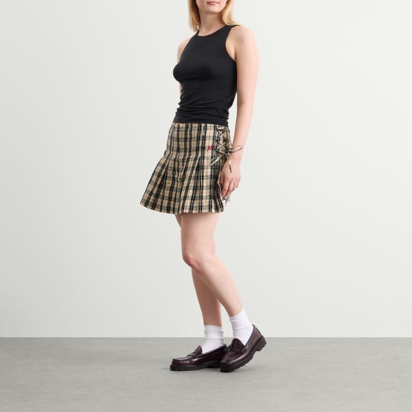 Мини-юбка-килт Damson Madder Moffy – это изысканный отсыл к классическому стилю. Изготовленная из органического хлопка в клетку, она имеет четкие складки, регулируемые завязки по бокам и застежку-молнию для идеальной посадки. Изящная красная вышивка DM придает этой элегантной модели современный вид, придавая классическому силуэту современность.