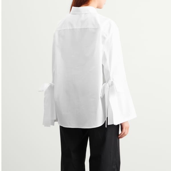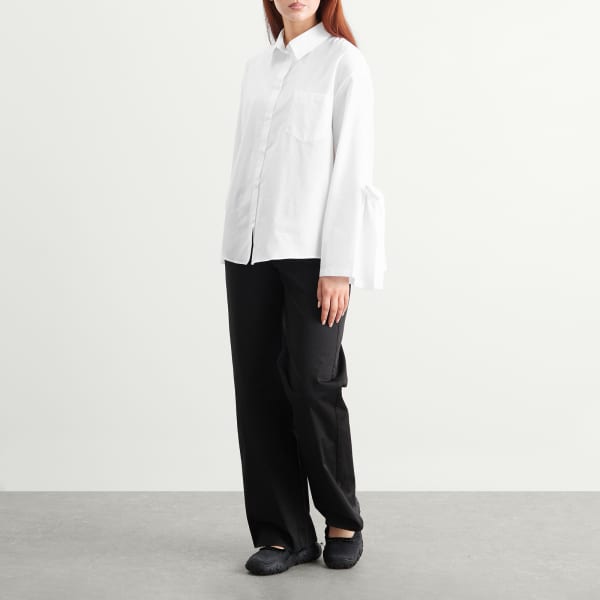 Классическая хлопковая рубашка, но выполненная в стиле Сесили Бансен. В рубашке Бриджит минималистичная романтика сочетается с выразительным дизайном. Широкие рукава и завязанные локти создают ощущение движения и драматизма, а четкие линии кроя воплощают скандинавский стиль с изюминкой.