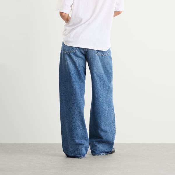 Винтажные синие мешковатые джинсы Acne Studios 1981 года, сочетающие в себе ретро-силуэт с современным подходом, отличаются свободным кроем из плотного денима. Низкая талия, широкие штанины и удлиненная длина воплощают энергию скейтерской и уличной моды 90-х с чистой скандинавской точностью. Винтажный синий оттенок добавляет глубины, а кожаная нашивка сзади и пять карманов сохраняют классику.