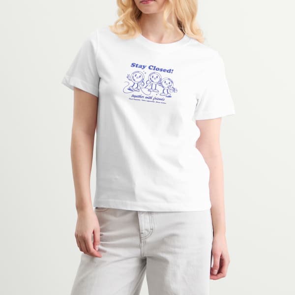 Футболка с принтом в виде кнопки Stay Closed, белый