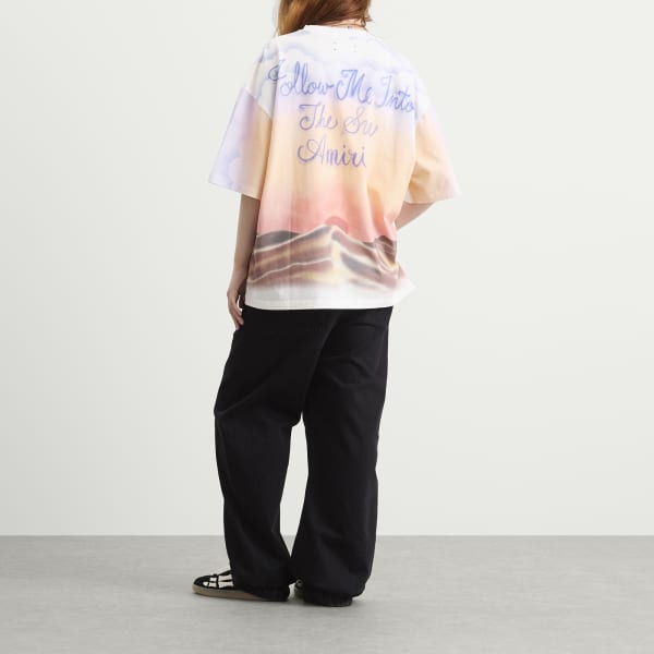 Футболка AMIRI, вдохновленная винтажными сувенирами ручной работы, сшита из хлопкового джерси. Свободный крой, изображение восхода солнца выполнено аэрографом спереди и сзади.