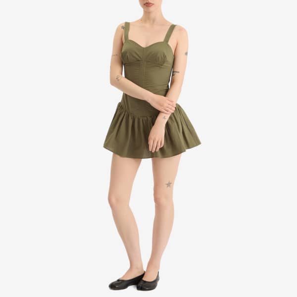 Peachy Den создает изделия, воплощающие непринужденную элегантность и продуманные детали, для современной женщины, ценящей стиль и комфорт. Платье Dylan Romper сочетает в себе плотный хлопок, привлекательный лиф со сборками и заниженную талию, а вшитые шорты обеспечивают удобство и защиту. Регулируемые бретели и потайная молния сзади обеспечивают элегантную и удобную посадку, позволяя вам чувствовать себя уверенно и модно.