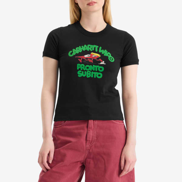 Футболка Pronto от Carhartt WIP предлагает куски, а не сезоны. Эта непринужденная футболка из органического хлопка, избегающая быстрой моды, имеет свободный крой, обеспечивающий комфорт в течение всего дня. Графические принты спереди и сзади отсылают к ироничной дань уважения бренду, его вымышленной пиццерии — горячей, свежей и никогда не слишком серьёзной.