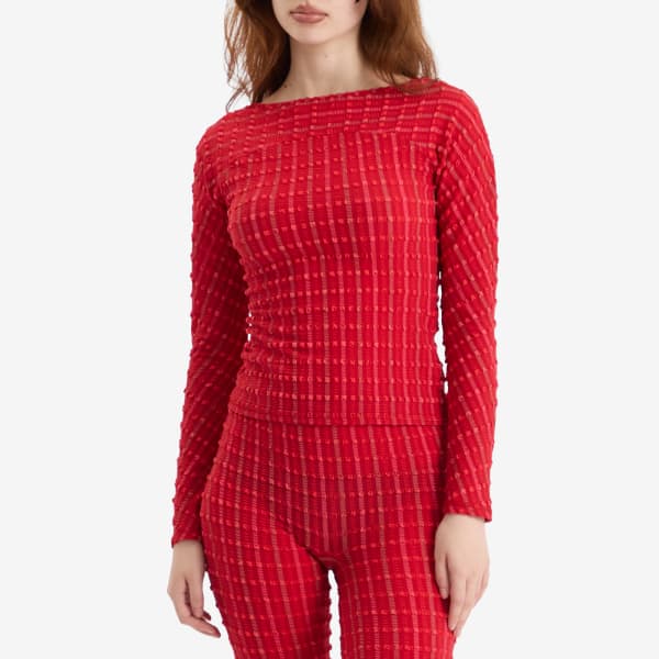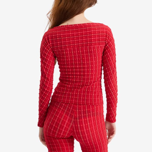 Длинный топ Cindy, созданный для повседневной носки без ущерба для стиля, станет прекрасным дополнением к любому капсульному гардеробу. Он отличается привлекательным вырезом «лодочка» и узором по всей поверхности, цвета которого вдохновлены классическими помадами – от ярко-красного до нежно-розового.