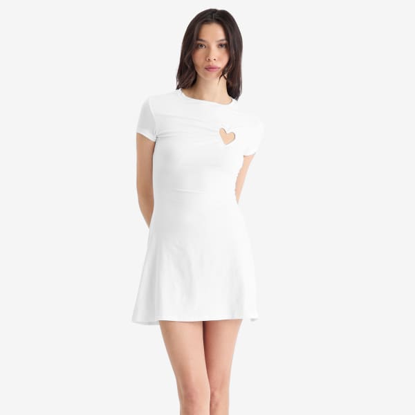 Какой может быть лучший момент, чтобы нарядиться в ярком наряде, чем День всех влюблённых? У SKIMS есть как раз то, что нужно, прямо из коллекции ко Дню святого Валентина. Заявите о себе в этом белом мини-платье с игривым вырезом в виде сердца – очаровательный и изысканный штрих, идеально подходящий для такого случая.