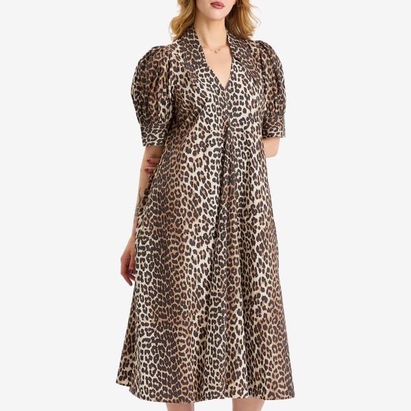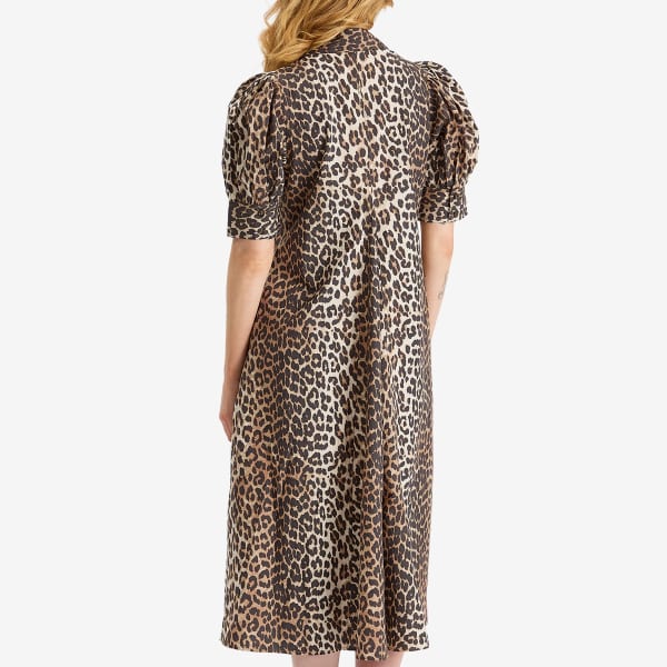 Платье миди из поплина с принтом Ganni, цвет leopard