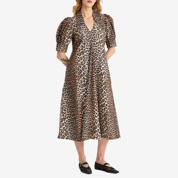 Платье миди из поплина с принтом Ganni, цвет leopard 35 528₽